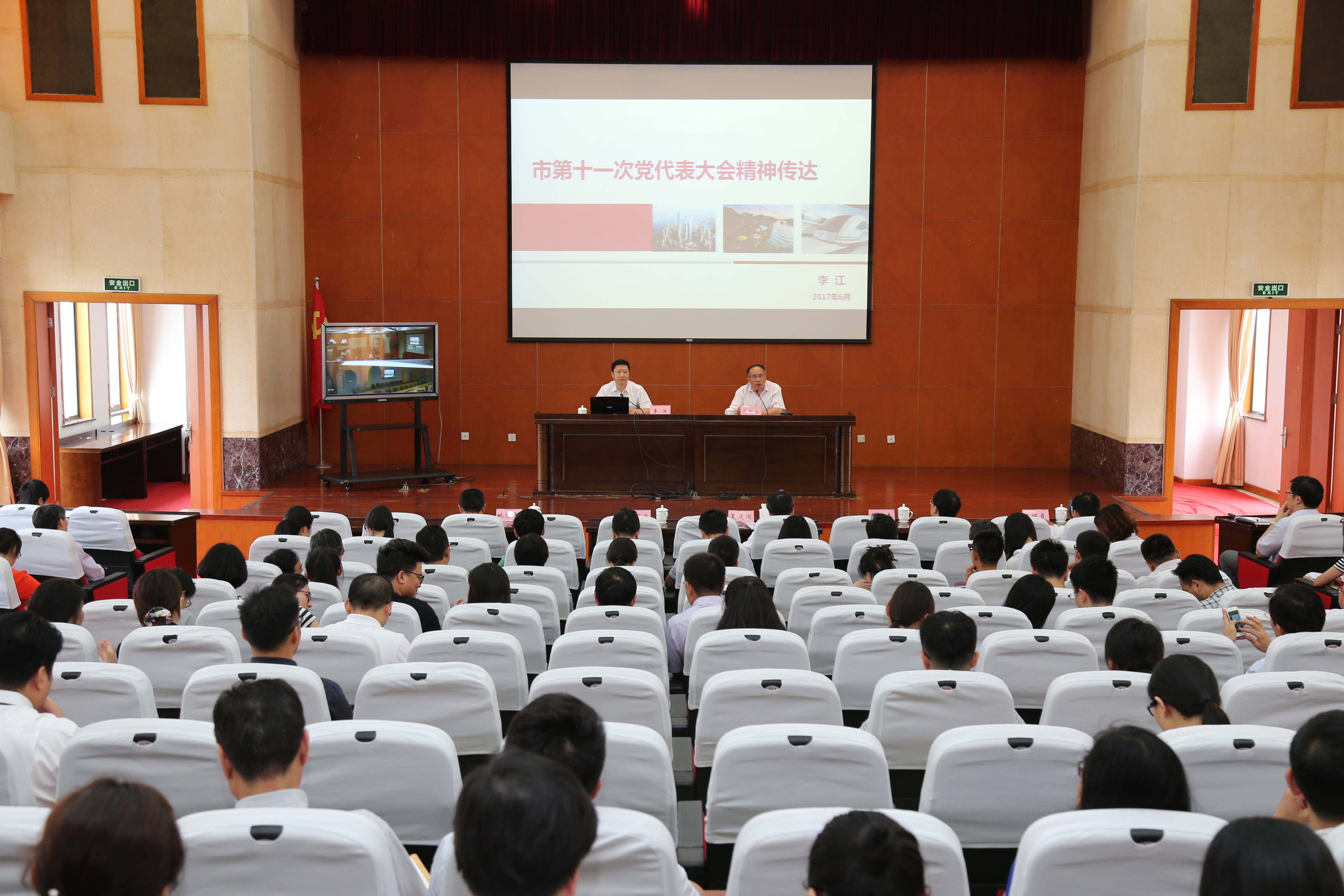 李江书记提出,我们要切实抓好市第十一次党代会精神的传达学习和贯彻落实,要采取多种形式,及时组织全校广大党员干部、师生认真学习大会文件,全面了解深刻领党代会报告的主要内容和精神,切实把广大党员干部和师生的思想和行动统一到大会精神上,要进一步增强责任感、使命感、紧迫感,结合学校的实际,加强调查研究,细化工作措施,抓好工作部署,始终以锐意改革的勇气、敢为人先的锐气、蓬勃向上的朝气,继续努力,积极探索,以自己的实际行动推动大会提出的各项目标任务落到实处。