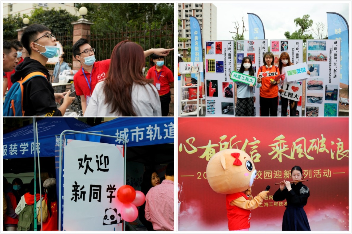 各学院结合专业特色,为新生准备了特别的迎新活动:机械与汽车工程学院举办了“学‘史’笃行,助力‘智’造”四史盲盒竞猜活动,极具学院特色的“智造+”礼包,寓意同学们成为未来智造家;电子电气工程学院以5G体温筛查防控系统测温机器人,为新生打造入校第一道“安全门”;管理学院邀请优秀校友担任班导师,与专业课老师、辅导员共同组成“新生成长导师团”;化学化工学院根据化学原理制作彩虹瓶,激发新生学习动力;材料工程学院发放给新生一份空白简历和一份学长优秀简历,勉励同学们明确目标,做好规划,向未来出发;艺术设计学院结合抗疫筹备了战“疫”面前“艺”起行动作品展,激扬学生爱国情怀;航空运输学院、飞行学院组织了“光盘行动”“垃圾分类”倡议签名,勉励新生厉行节约;纺织服装学院发放给新生一张特制“车票”,寓意新生开启新的人生旅程;城市轨道交通学院准备了校园探索任务卡,引导新生在游戏中认识校园、熟悉身边人;中韩多媒体设计学院建立了24小时答疑解惑群,帮助新生尽快了解大学生活;高等职业技术学院筹备了“秋天的第一份洗礼”系列活动,以精品党课、思政课启迪未来;外国语学院准备了世界地图背景墙,鼓励同学们积极拓展国际视野;数理与统计学院为每位新生拍下入学第一张照片,记录初入大学时“最美的你”……各具特色的迎新活动饱含着程园对“萌新们”的美好祝福,希望他们在程园筑梦人生,迎接未来。