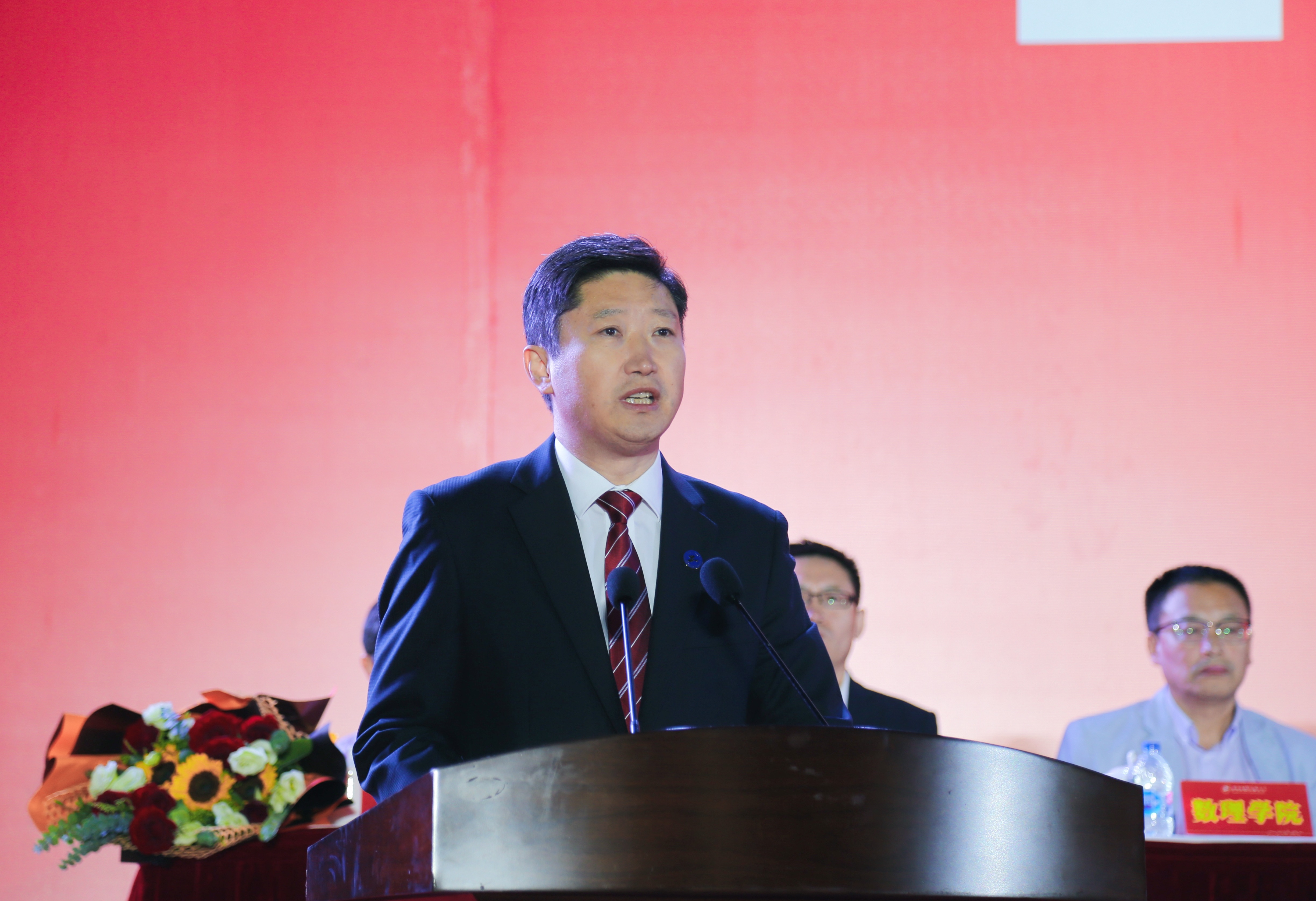 校党委副书记鲁嘉华为大学生思政讲师团授旗,寄语讲师团成员传承使命,接续奋斗,做新时代的“收信人”,用实际行动讲好中国故事,传递中国声音,践行青春誓言。