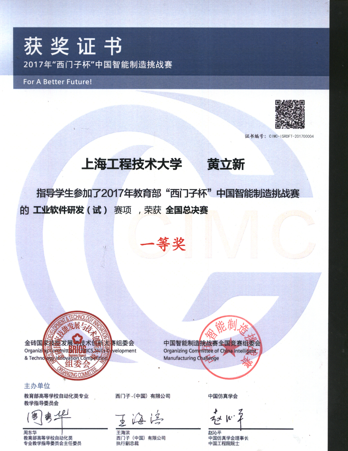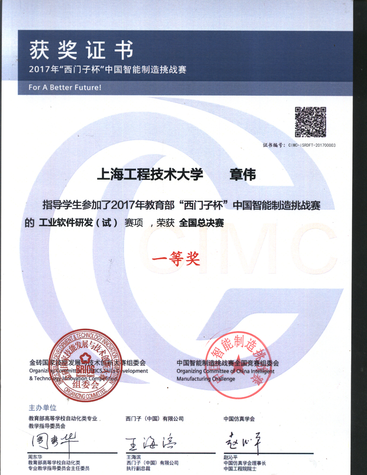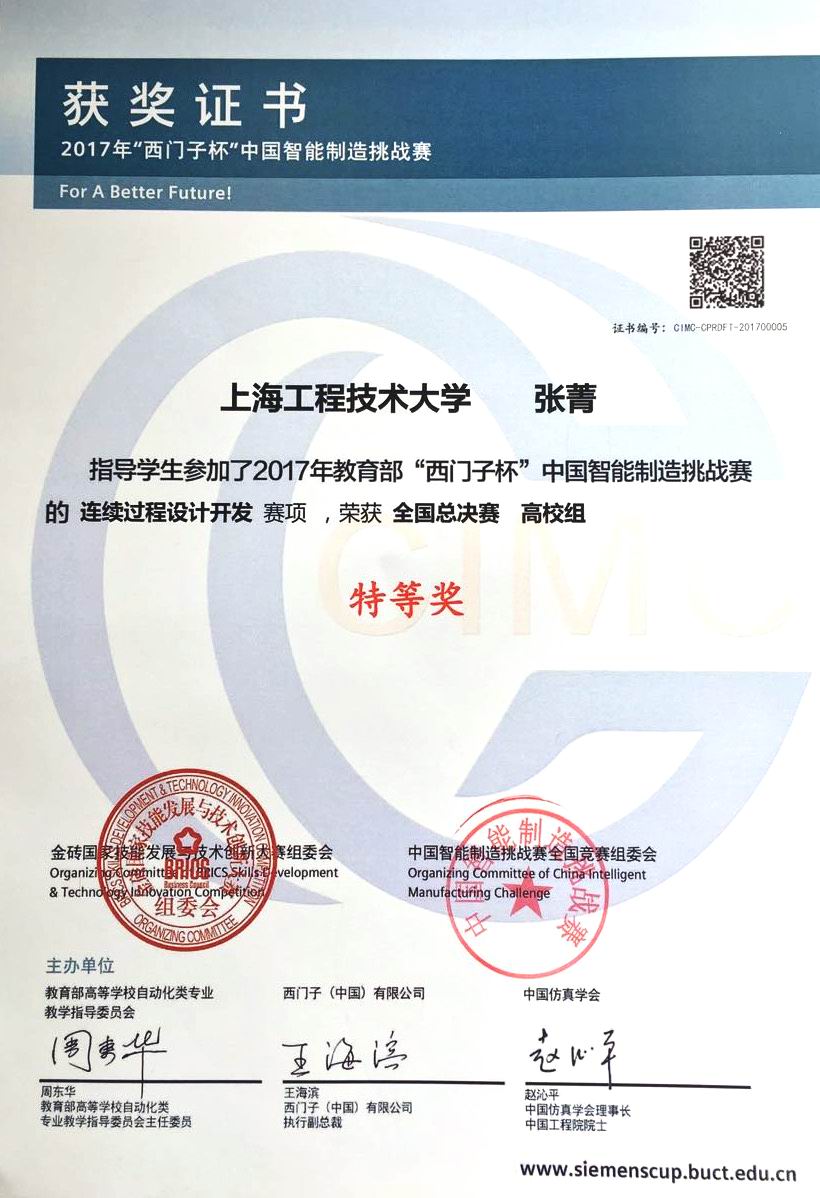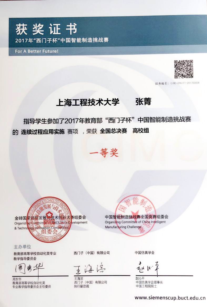 “西门子杯”中国智能制造挑战赛原为全国大学生“西门子杯”工业自动化挑战赛,是在教育部与西门子(中国)有限公司签订的战略合作框架下的一项国家级赛事,由教育部高等学校自动化类专业教学指导委员会、西门子(中国)有限公司和中国仿真学会联合主办。中国智能制造挑战赛自2006年创办,是国内历史较久、规模最大和影响力最广的自动化、智能领域工程竞赛。2017年竞赛共设九大赛项。