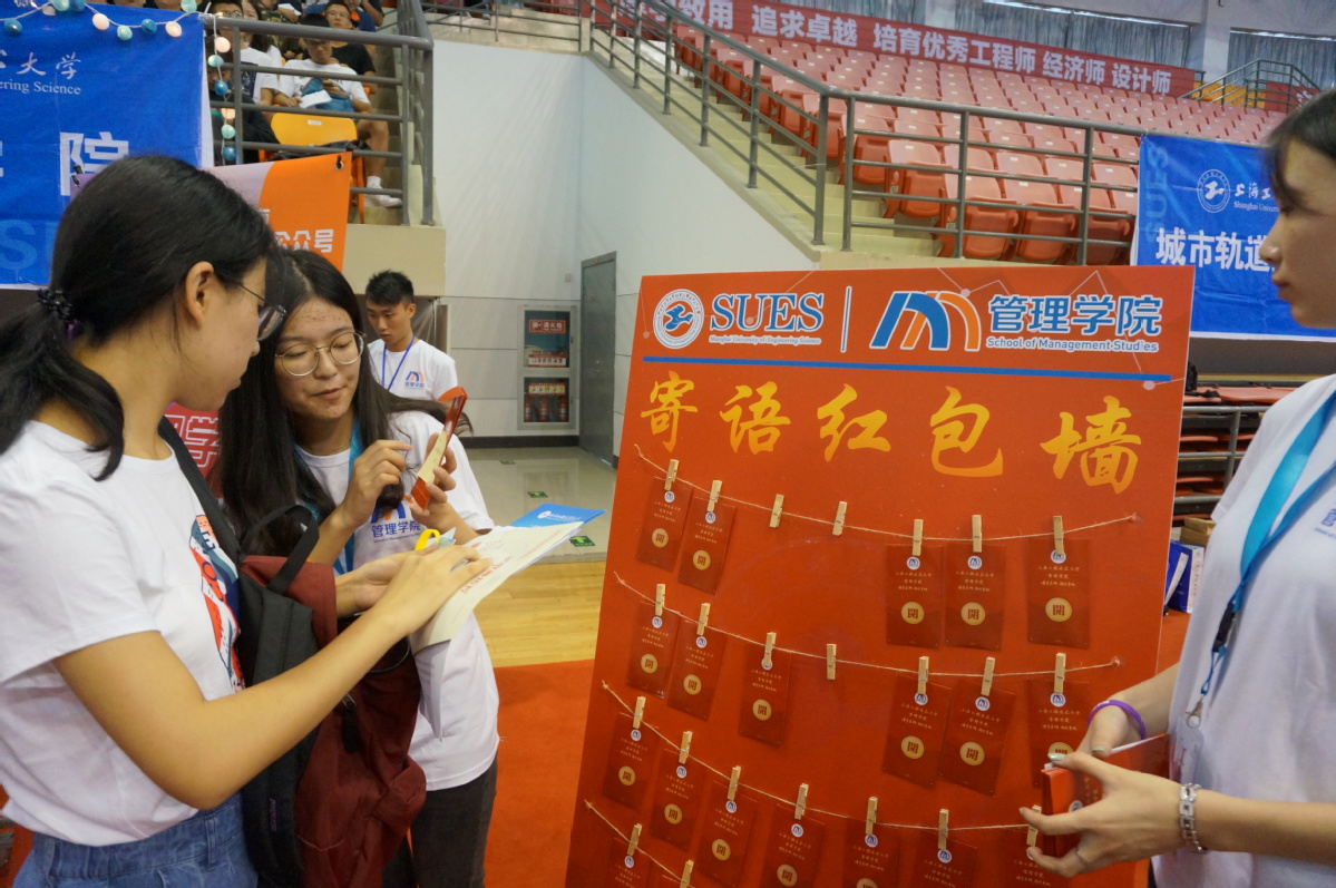 在迎新会场,各学院花心思设计的小创意让新生们感受到了家的温暖。管理学院在新生入学报到时,在微信平台推出了祝福“红包”,为新生送上了来自校友和在校生的100余条祝福,欢迎新校友的到来;化学化工学院为每一位新生准备了纪念明信片,明信片上印有学校和学院的标志性建筑,旨在从入校第一天开始培育同学们的爱校荣校意识;材料工程学院设计了“我的日记——开学第一天”留影活动,新生在报到时与家长在绘有校园美景和日期的展板前合影,学院会将照片的电子版发给新生及家长,留作美好回忆;汽车工程学院为新生准备了“致家长的一封信”,帮助家长了解学生的在校的学习生活情况,保证家长和学院无缝对接,并在宿舍区设置了新生留影墙,为新生记录入学最初的模样;社会科学学院在迎新现场摆放了中国地图展板,新生们在贴上记录求学路程的车票,来自四方的车票代表了社科新生的力量,这股力量鼓励新生走进新的校园实现梦想;外国语学院为每位新生赠送“私人定制”的学业礼袋,其中包含学院定制的入学指南、校徽、学生证、校园卡等,还有12名导师用心为学生撰写的寄语书签,“The best preparation for tomorrow is doing your best today.”“一带一路,翻译开路!祝愿‘译’路梨花处处开,创造美好未来!”……