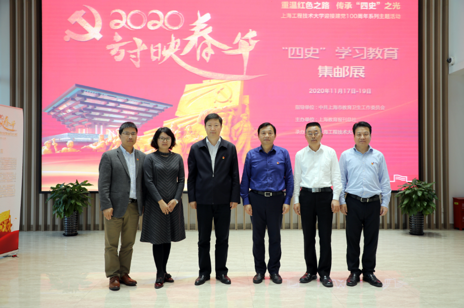 为深入学习贯彻习近平新时代中国特色社会主义思想,学习宣传贯彻《新时代爱国主义教育实施纲要》,“方寸映春华‘四史’学习教育集邮展”近日在我校松江校区现代交通工程中心一楼展出,11月18日下午,学校党委中心组(扩大)专题参观学习了本次邮展。校党委书记李江,党委副书记史健勇,党委副书记、副校长朱晓青,副校长姚秀平,全体中层正职干部参加了学习会。