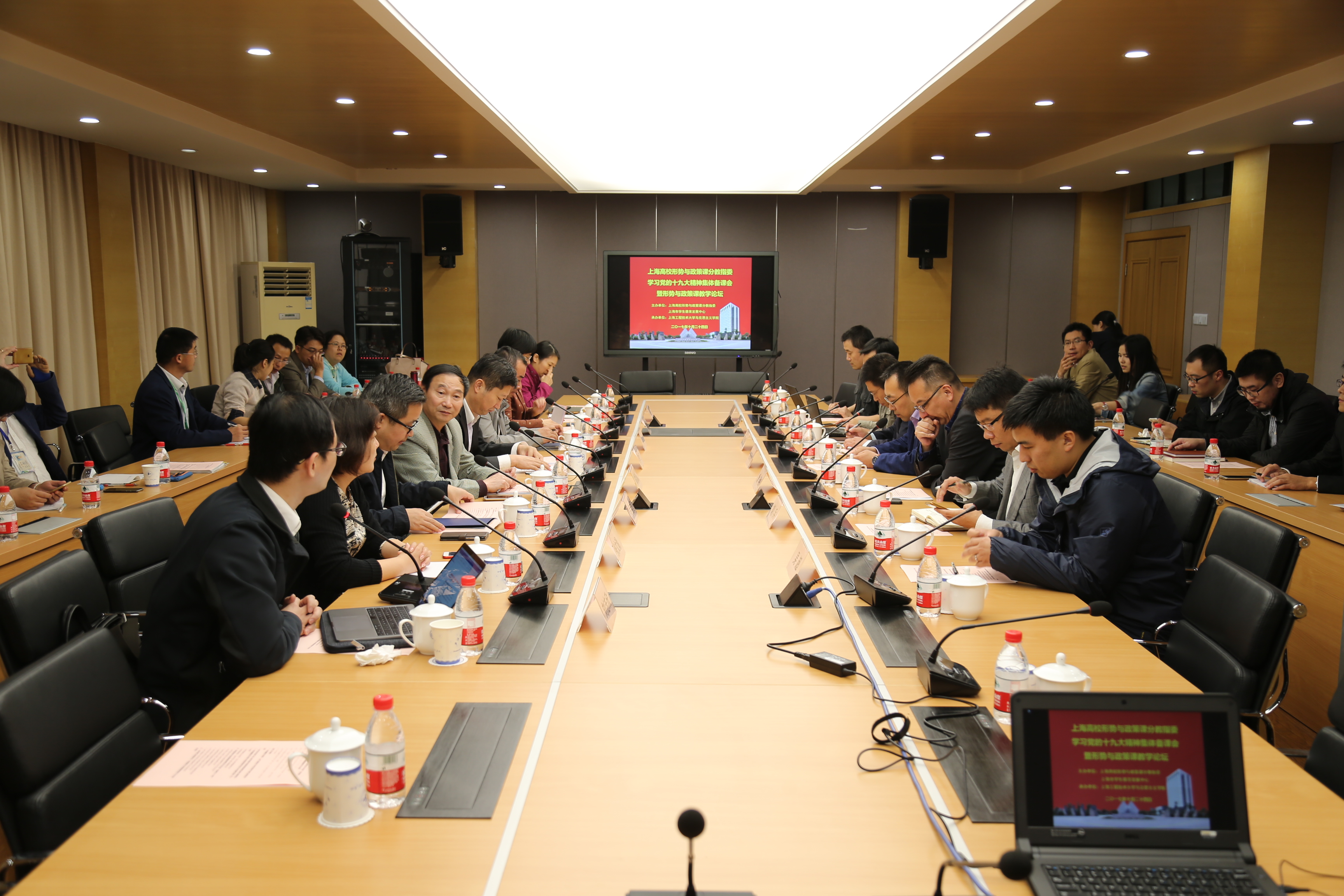 分教指委主任委员、校党委书记李江致开幕词,介绍了上海市“形势与政策”和“当代世界经济与政治”分教指委成立以来的工作和成绩,并就十九大精神进入课堂提出了具体要求。分教指委副主任委员、复旦大学徐蓉教授和分教指委委员、海军军医大学王芳教授,分别就形势与政策课程教学规范化和创新性问题进行主旨发言。