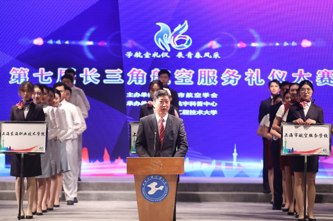 11月27日,由上海市航空学会主办,上海航宇科普中心、上海工程技术大学承办的第七届长三角航空服务礼仪大赛在我校松江校区举行。来自上海工程技术大学、上海应用技术大学、上海东海职业技术学院、上海立达学院、上海市航空服务学校、上海胤乘教育科技中心、江苏航空职业技术学院共七所院校的代表队参赛。我校党委书记李江;上海市航空学会理事长史坚忠,上海市航空学会副理事长、中国商飞科技委副主任徐庆宏,上海航空公司原总经理范鸿喜,上海机场集团原副总裁汪光弟,上海市科协科普部副部长富晔,上海市航空学会常务理事陈力华,上海航宇科普中心主任余振斌出席活动。我校相关学院、部门负责人参加活动。