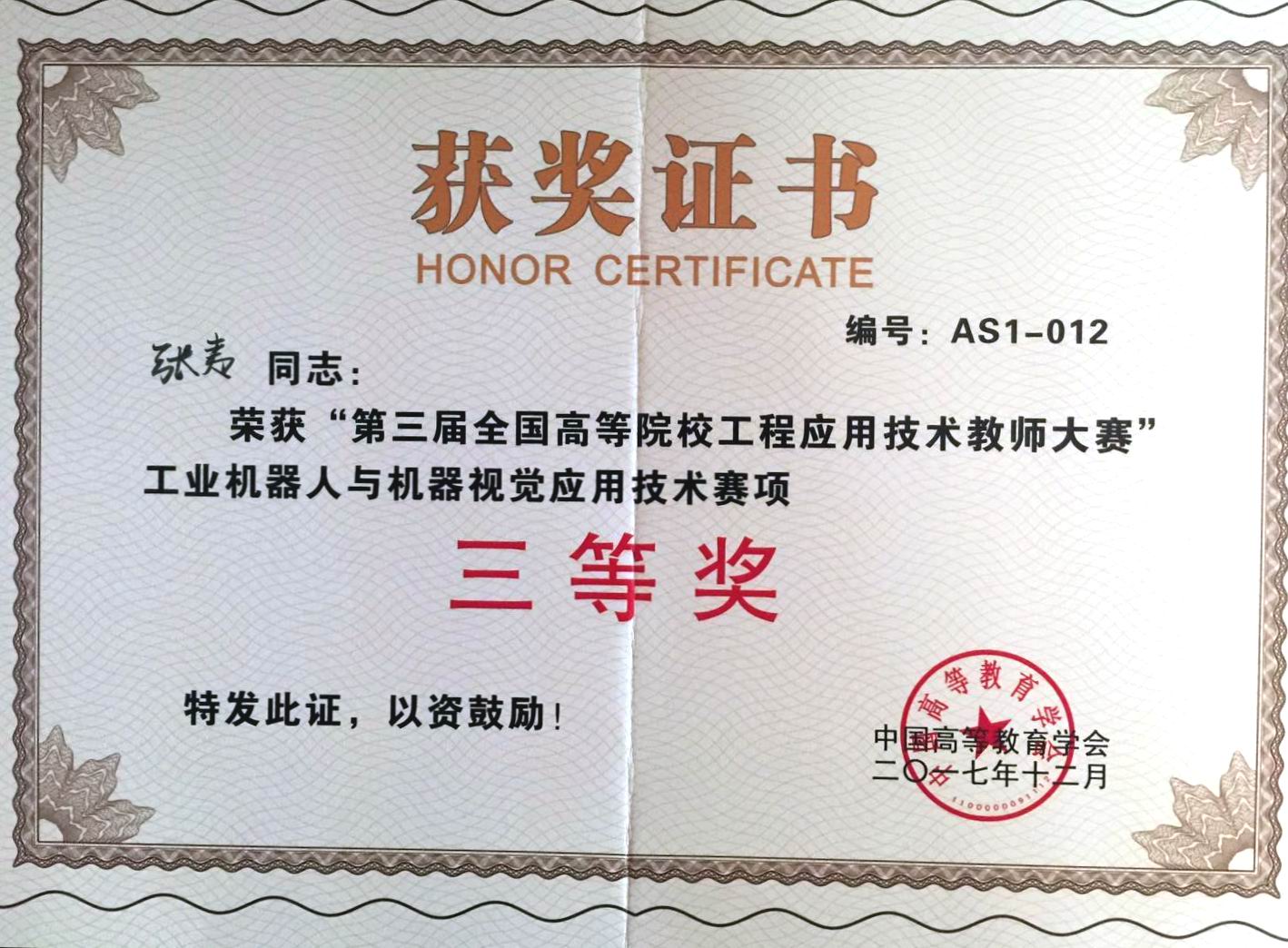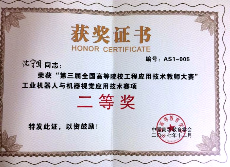 12月17日,历时3天的第三届全国高等院校工程应用技术教师大赛决赛在浙江大学落幕,我校工程实训中心沈守国和张夷两位老师最终荣获工业机器人与机器视觉应用技术赛项二等奖和三等奖。