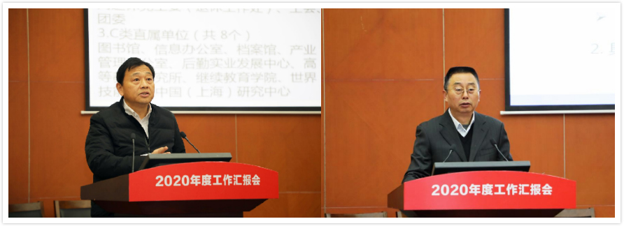 1月11日, 2020年度部门工作汇报会在行政楼B301会议室举行。校党委书记李江,校党委副书记、工会主席史健勇,校党委副书记、副校长朱晓青,副校长姚秀平、王岩松、夏春明出席会议,中层干部、教师代表参加了会议,汇报会分上下两场,分别由史健勇副书记、姚秀平副校长主持。2020年部门考核工作以学校党政工作要点为依据,以实现学校“两个基本”的需求为导向,强化分类指导、注重目标落地、突出事业发展,充分发挥导向和激励作用。