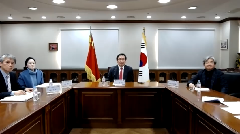 1月12日下午,我校与韩国东西大学在行政楼204会议室召开中韩合作办学联合管理委员会视频会议。我校党委书记李江、副校长夏春明,韩国东西大学校长张济国、副校长崔元一出席会议,两校管理委员会委员参加了会议。会议由夏春明副校长主持。