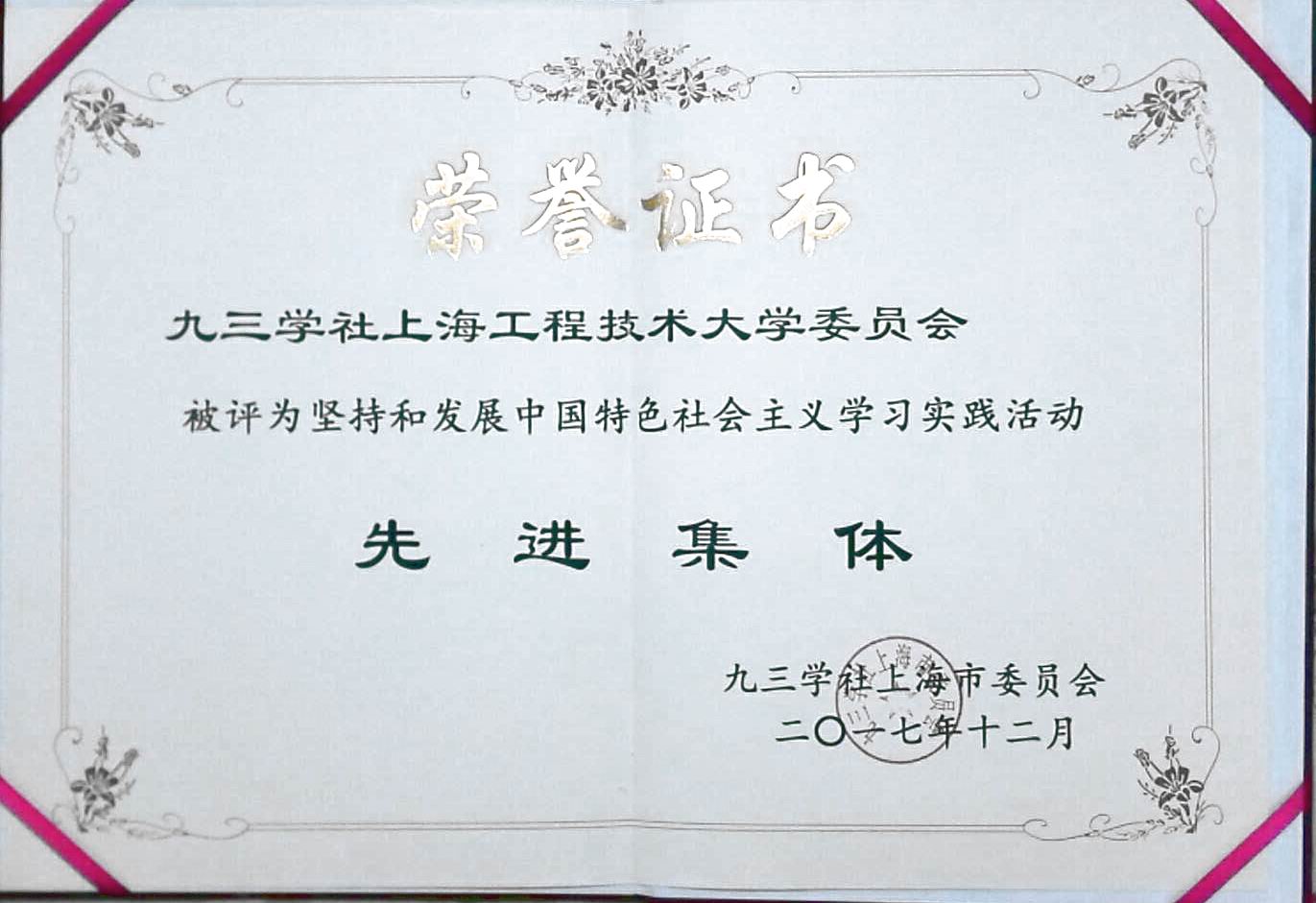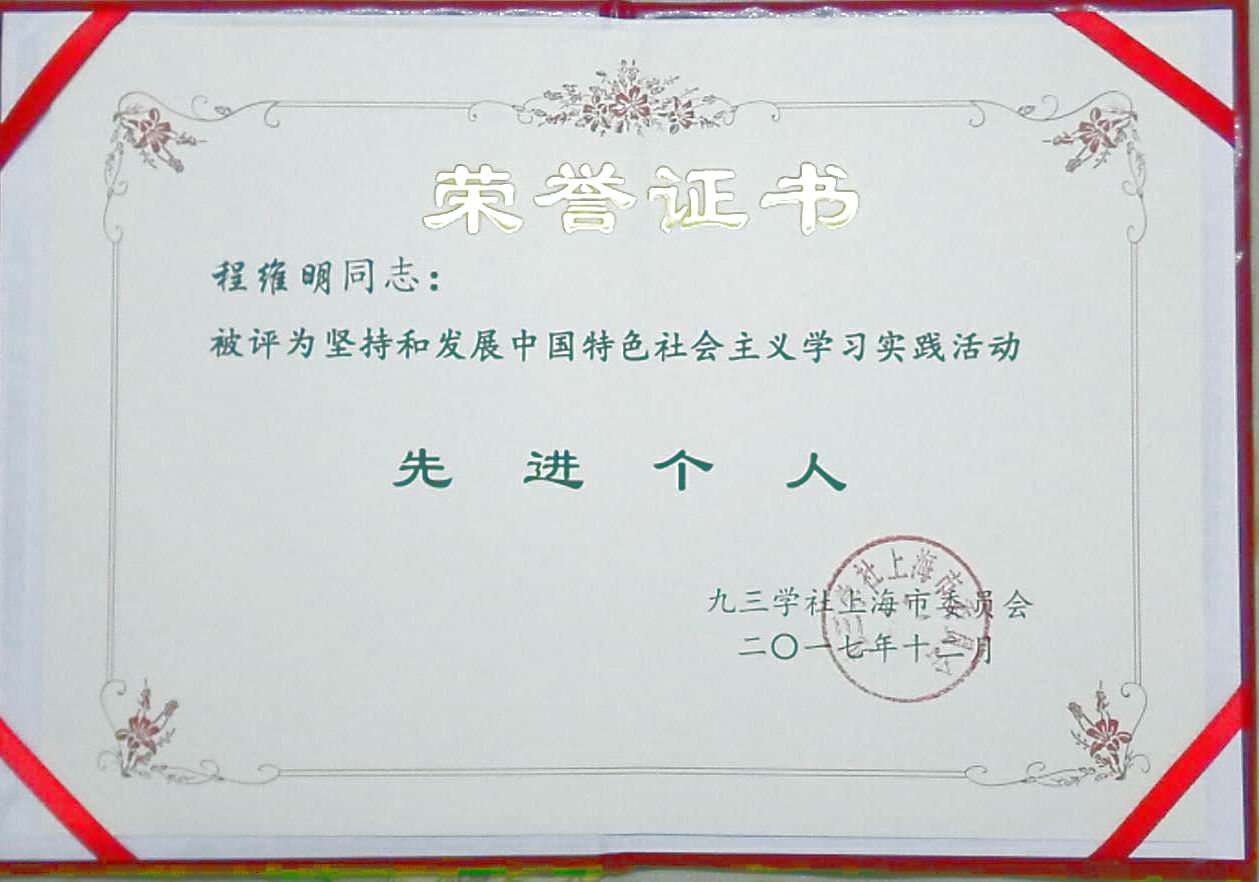 近日举行的九三学社上海市委第二次全体(扩大)会议上,九三学社上海市委表彰了“坚持和发展中国特色社会主义学习实践活动”先进集体和先进个人。我校九三学社工程大委员会荣获先进集体,社员程维明、倪洁诚同志荣获先进个人称号。