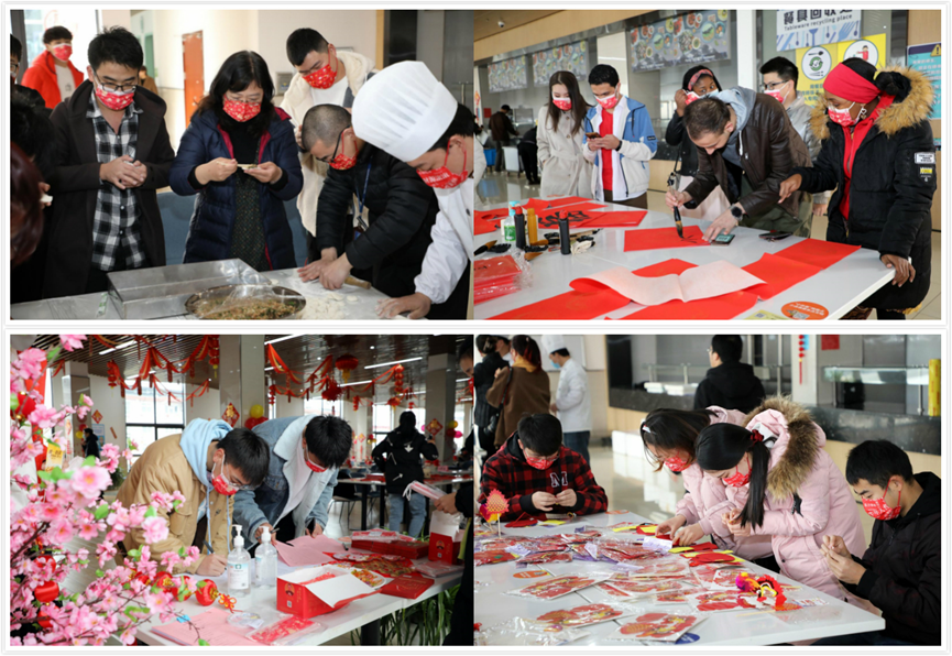 留校师生还参加了制作新春DIY饰品、笔墨春联、裁剪窗花等活动,一起品味喜庆“年”的味道,感受“家”的温暖。