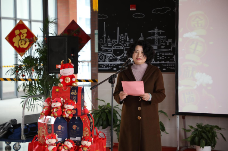 校党委副书记、副校长朱晓青致新春贺词,代表学校党委向全体留校师生,致以诚挚的问候、衷心的感谢和美好的新春祝福!朱晓青副书记讲到:受疫情影响,同学们虽然不能够回家过年,但大家留校不孤单,学校举办多形式的跨年活动,我们一起“迎新春、过大年”,让我们“心”在一起、感受“家”的温暖,让自己、家人、亲友安心和放心。同时希望同学们在留校期间,遵守学校疫情防控要求,时刻注意个人安全,合理安排学习作息时间,做好职业生涯规划、提升综合素质能力、勤奋学习专业知识,为即将开启的新学期奠定良好的基础,开个好头。