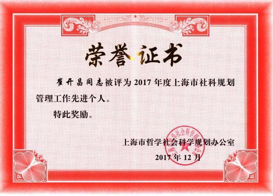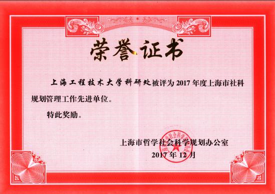 近日,2018年度上海市社科规划管理工作会议在市委宣传部举行,我校科研处荣获“上海市社科管理先进单位”,科研处崔开昌同志荣获“上海市社科管理先进个人”。此次包括上海市高校、科研院所在内共有13家单位获得“上海市社科管理先进单位”荣誉称号,我校是唯一一家获此殊荣的市属理工类高校。这既说明了市委宣传部、市哲学社会科学规划办公室对我校社科工作的肯定,也是对我校社科工作者的巨大鼓舞。