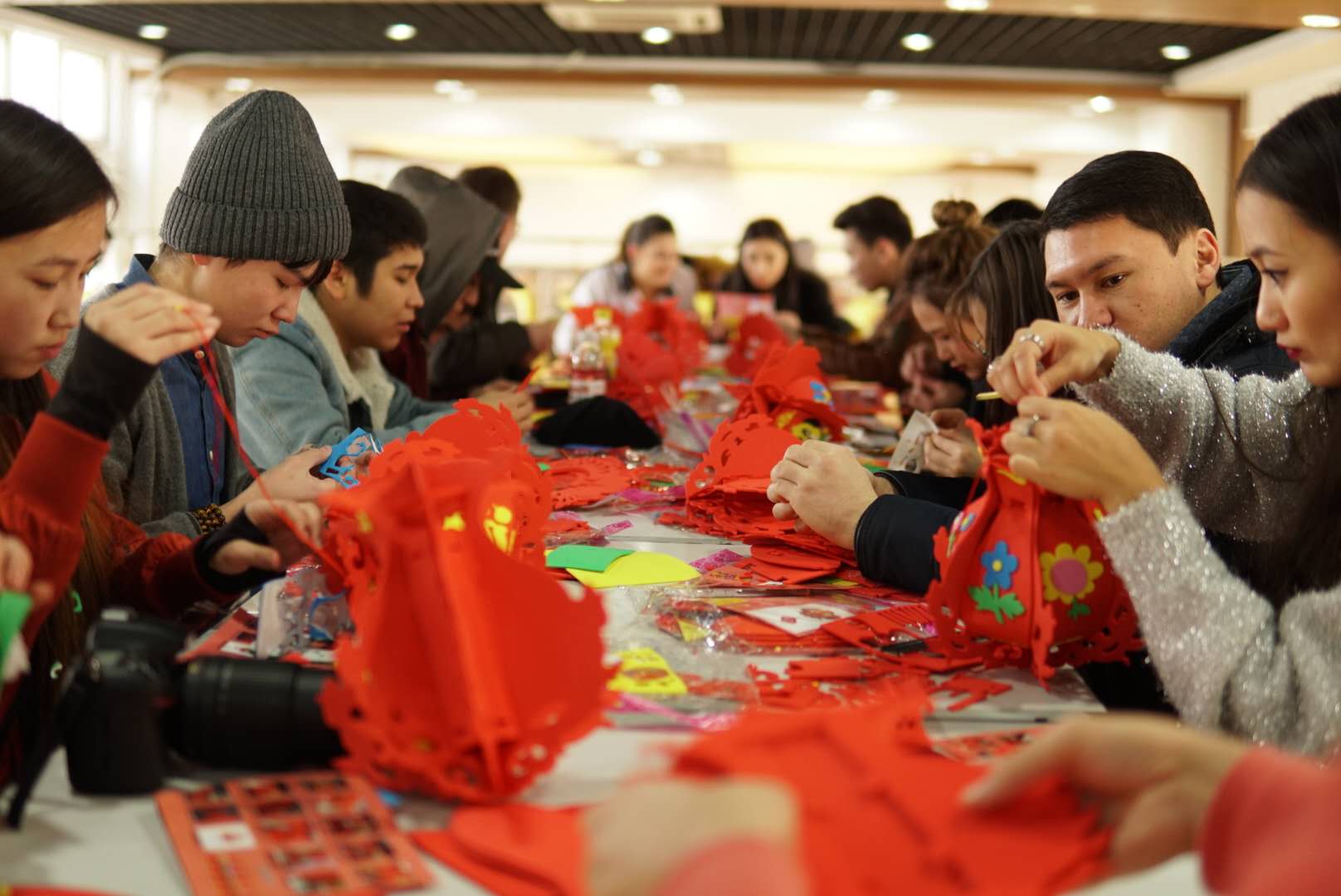 为丰富寒假留校国际学生的假期生活,2月6日,学校在第四食堂举行国际学生新春民俗体验活动,让国际学生感受节日的氛围,团团圆圆,快快乐乐,共同迎接新春佳节的到来。来自俄罗斯、哈萨克斯坦、乌兹别克斯坦、阿塞拜疆、蒙古、越南等国家的三十余位国际学生参加了活动。