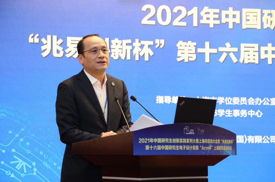 4月10日上午,2021年中国研究生创新实践系列大赛上海市启动大会暨“兆易创新杯”第十六届中国研究生电子设计竞赛“Arm杯”上海赛区启动仪式在我校举行。中国电子学会、上海市教委、上海市学位办、上海市学生事务中心、上海市电子学会、上海市就业促进中心、上海市大学生科创基金会、上海工程技术大学相关领导,沪上研究生培养单位负责人,赛事专家、学生代表、企业代表出席了本次启动仪式。仪式由上海工程技术大学副校长王岩松主持。