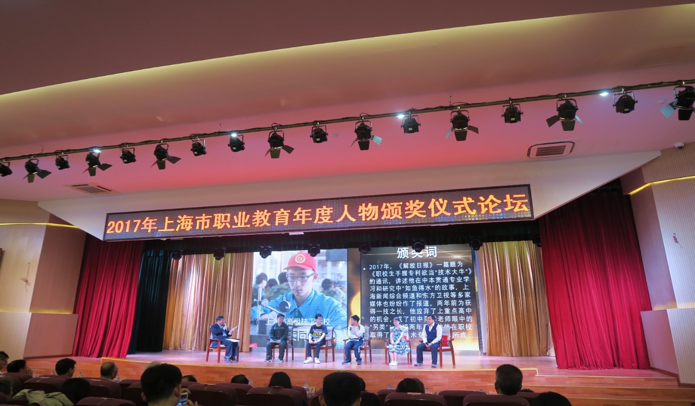 3月31日举行的2017年上海市职业教育协会年会暨上海职业教育年度新闻人物颁奖会上传来喜讯,我校高职学院高辰同学当选年度职业教育新闻人物。
