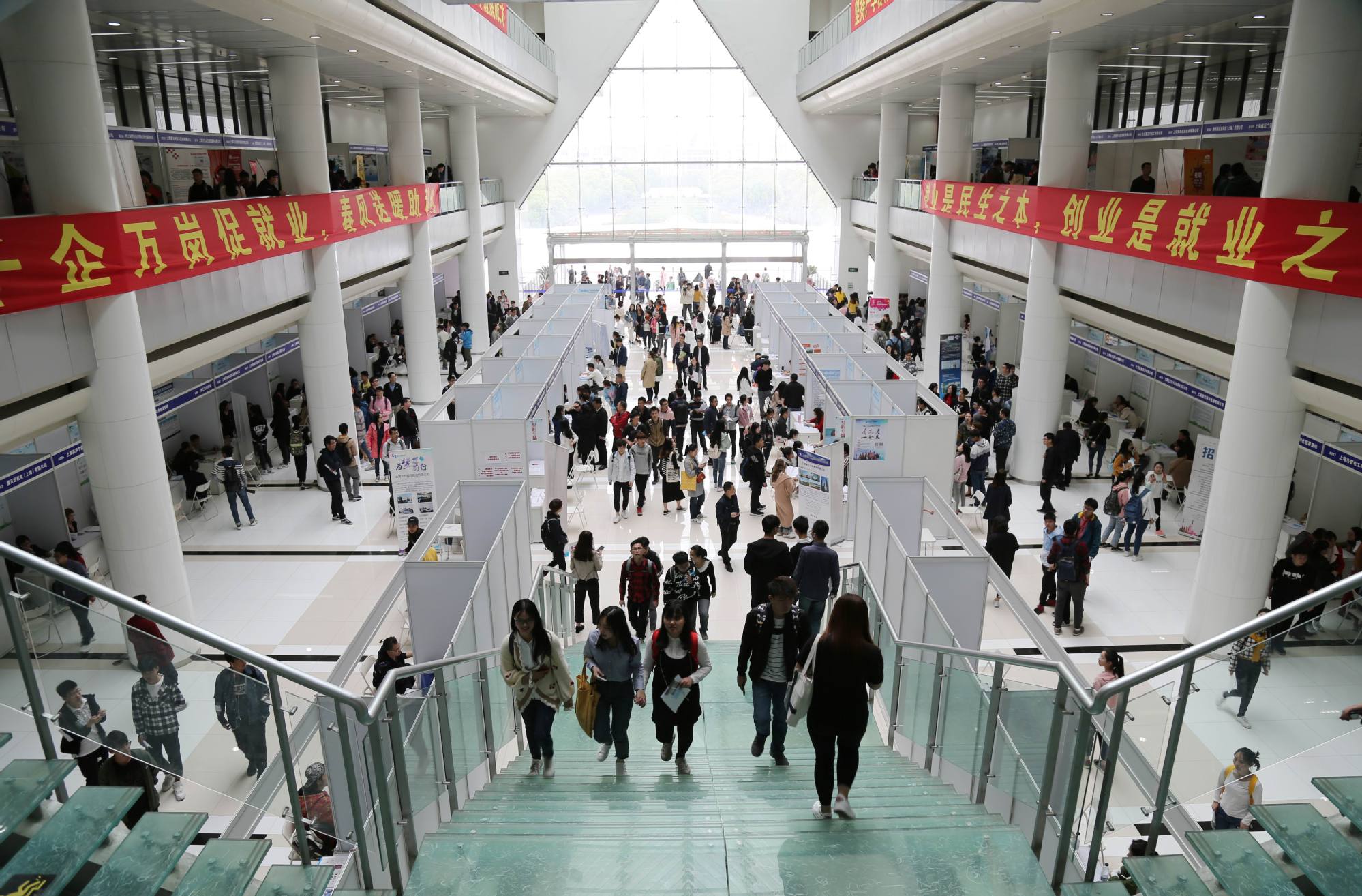 作为上海唯一一所面向一至四年级在校大学生举办校园招聘会的高校,本次招聘会共吸引412家用人单位前来参加,涵盖交通运输、计算机、通信、机械、化工、医药、管理、经济、教育、外语等众多学科领域和专业门类,为学生提供产学合作教育岗位6500个以及毕业生就业岗位3200个,有6000余名学生到场参加,与用人单位进行面对面的互动交流和双向选择。
