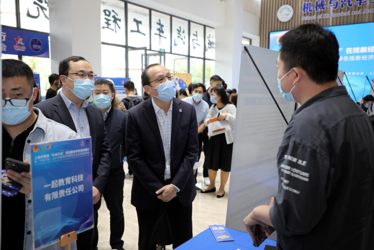 俞涛校长莅临招聘会现场,与各用人单位、毕业生、志愿者亲切交流。他指出,感谢团市委搭建平台,在线新经济企业既是青年人创新创业和成长发展的重要空间,又是关系到广大青年学习生活需求的关键领域,工程大承办此次活动,责任与使命并重。