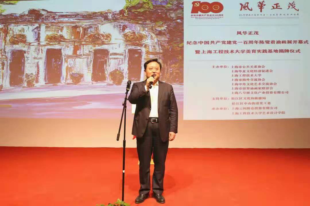 为深入推进党史学习教育,学习贯彻习近平新时代中国特色社会主义思想,以及习近平总书记考察清华大学时提出的 “美术、艺术、科学、技术相辅相成、相互促进、相得益彰,要把美术成果更好服务于人民群众的高品质生活需求。要增强文化自信,以美为媒。”的重要指示精神,近日,“风华正茂——庆祝中国共产党建党一百周年陈燮君油画展开幕式暨上海工程技术大学美育实践基地揭牌仪式”在云间粮仓·云间艺术馆隆重举行。本次活动由上海市公共关系协会、上海华夏文化经济促进会、上海工程技术大学等单位主办,松江区文化和旅游局、松江区中山街道党工委支持,上海云间粮仓投资有限公司、上海工程技术大学艺术设计学院承办。