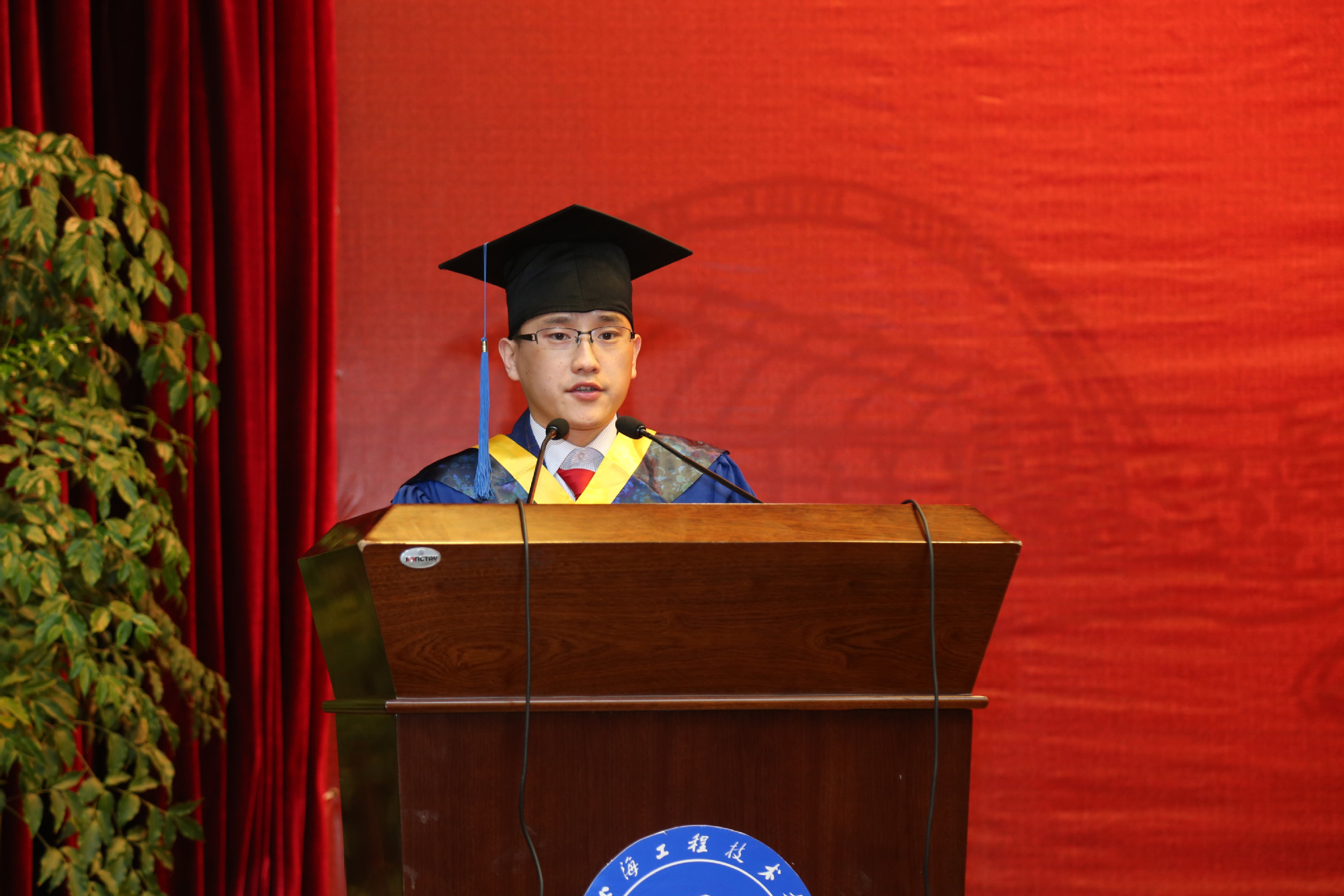 导师代表、汽车工程学院邢彦锋教授以《怀抱希望,奋勇前行》为题发言,回顾了与研究生共同奋斗的经历,希望毕业生们扛起国家发展和民族复兴的时代责任,继续保持上进心、爱心、敬畏心和阳光心,严谨求实、再创辉煌。校研究生会副主席、上海市优秀毕业生、材料工程学院刘应瑞同学以《心怀感恩,砥砺前行》为题代表全体毕业研究生发言,他回忆了在母校学习、生活和成长的历程,对母校的悉心培育、老师们的谆谆教诲、亲友的默默支持表示由衷的感谢,并表示在今后的人生道路上将时刻谨记和努力践行新时代对青年人的要求,用青春梦激扬中国梦,为母校增光添彩。