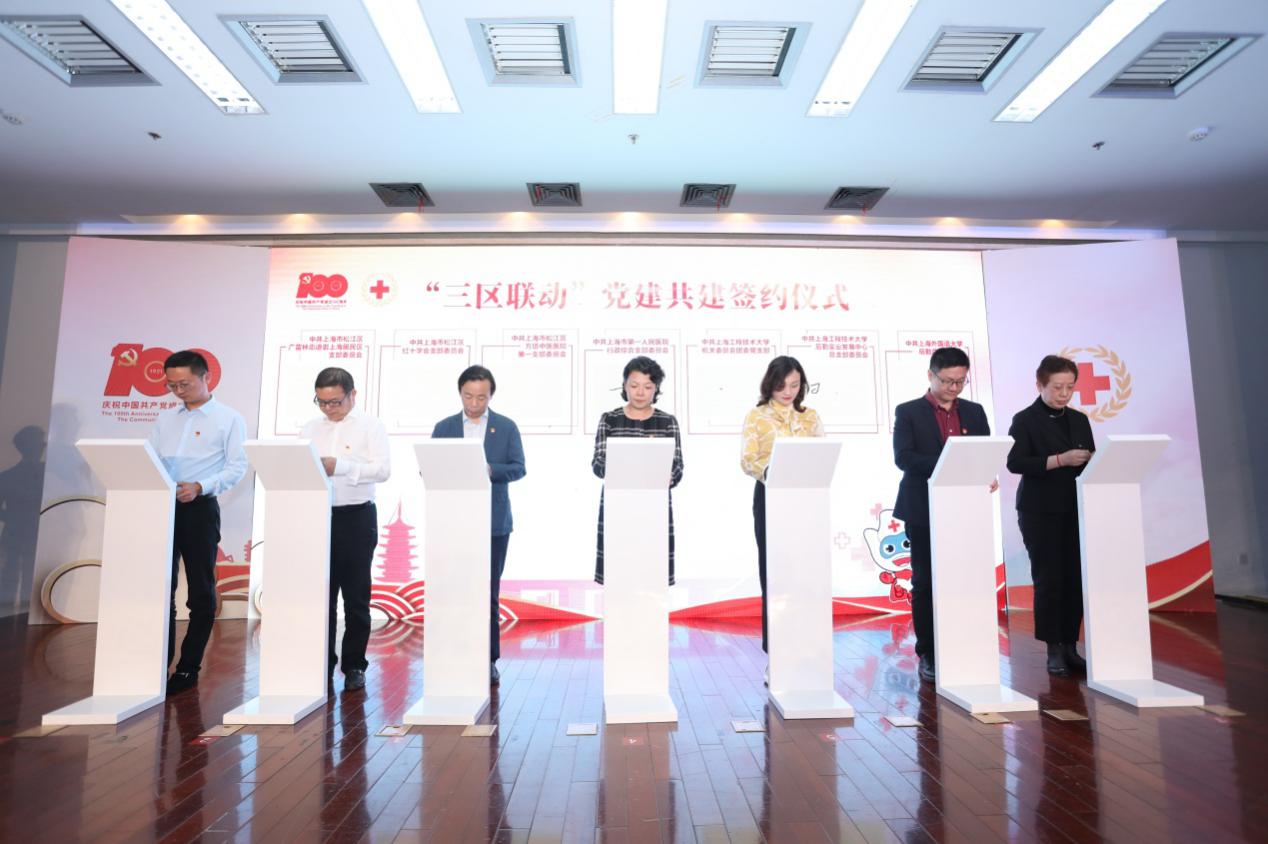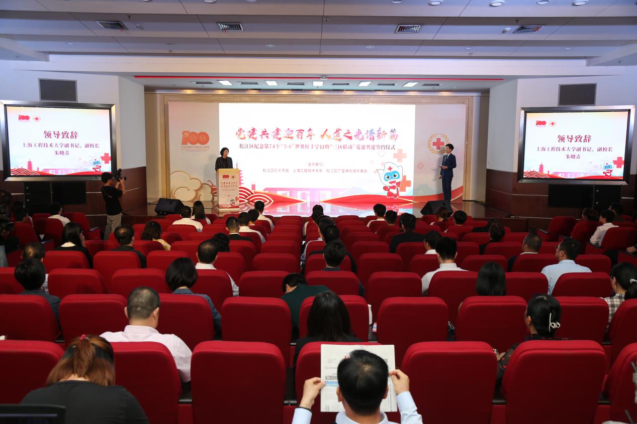 5月7日下午,由松江区红十字会、广富林街道、校团委共同举办的“党建共建迎百年 人道之光谱新篇”松江区纪念第74个“5•8”世界红十字日暨社区、院区、校区“三区联动”党建共建签约仪式在我校图文信息中心第二报告厅举行。校党委副书记、校长俞涛,校党委副书记、副校长朱晓青,副校长姚秀平,上海市红十字会党组书记、常务副会长张浩亮,松江区委副书记肖文高,副区长、区红十字会会长顾洁燕等出席活动。校团委、后发中心,上海外国语大学,上海市第一人民医院,松江区红十字会,松江区卫生健康委员会,广富林街道办事处,松江区方塔中医医院,松江区精神卫生中心,广富林街道与上海居委会,各镇、街道红十字会分管领导、冠名红十字医疗机构医务人员以及学校青年师生、红十字志愿者代表参加活动。