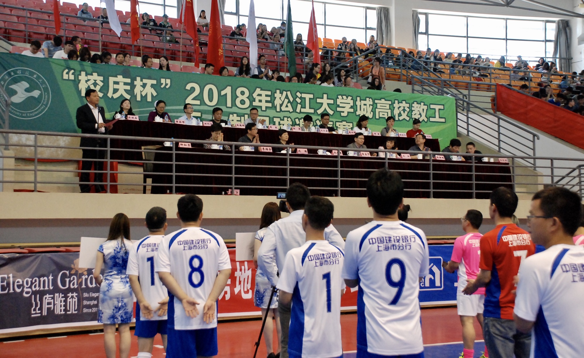 上海市教育工会副主席吉启华,中国建设银行上海市分行副行长齐红,松江大学城服务中心及参赛高校工会主席等嘉宾赴比赛现场观战,上海市教育工会副主席吉启华,校党委副书记、工会主席史健勇为比赛开球。开幕式由我校工会常务副主席柳如荣主持。