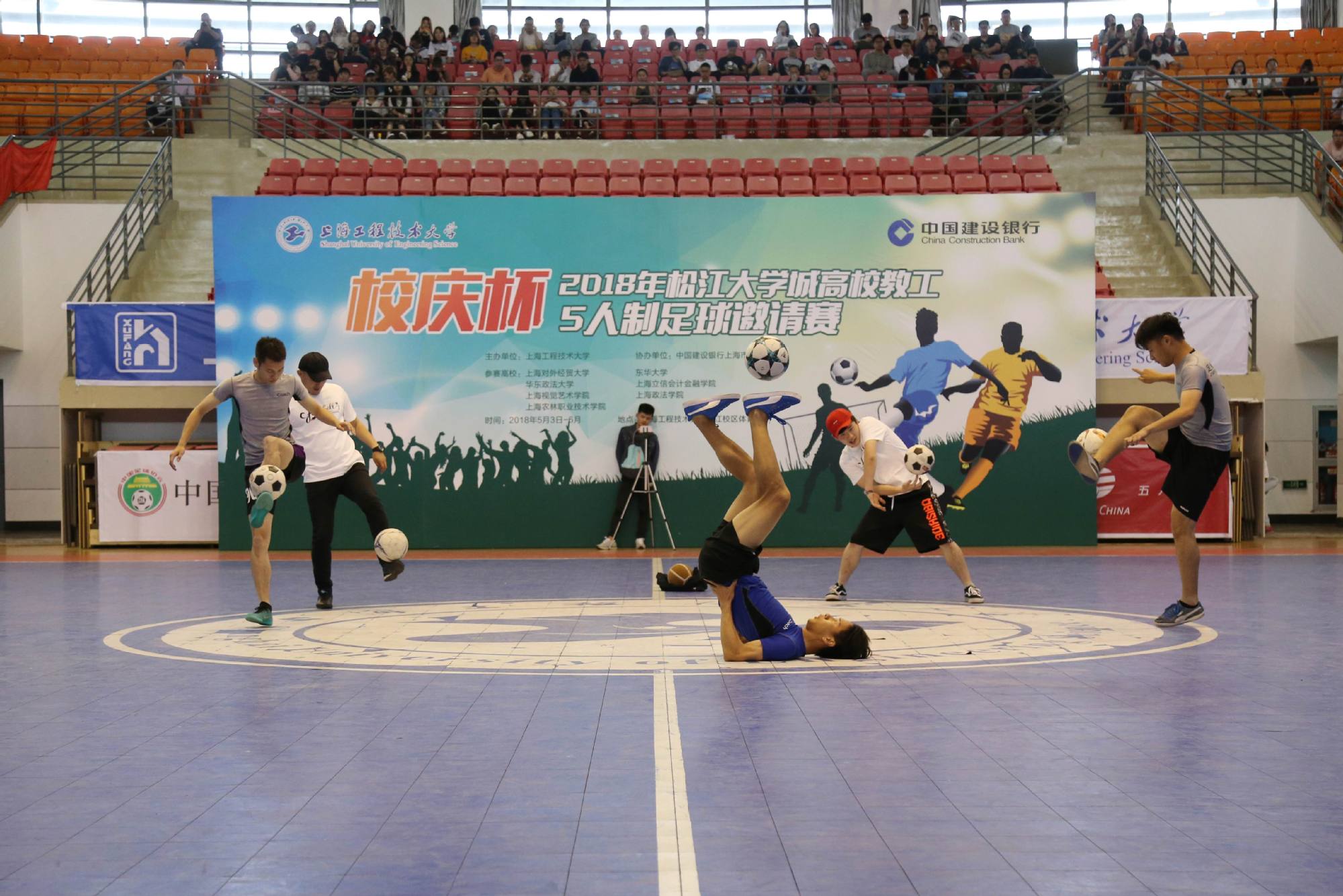 编者按:为展现新时代大学教工良好的精神面貌,学校主办了此次“校庆杯”2018年松江大学城高校教工5人制足球邀请赛,以球传情,以球会友,共同庆祝我校建校40周年。