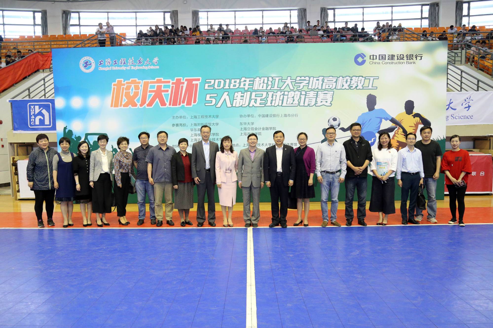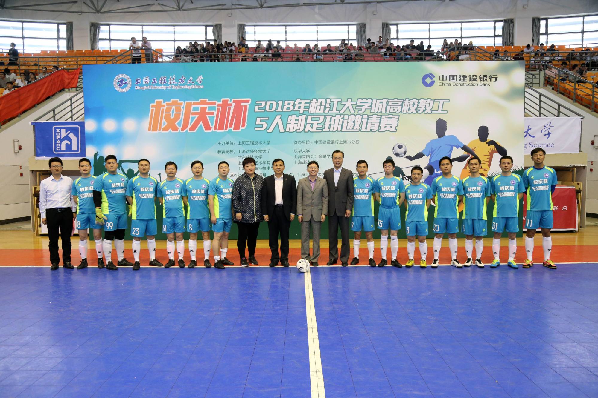 本次“校庆杯”2018年松江大学城高校教工5人制足球邀请赛共邀请上海对外经贸大学、东华大学、华东政法大学、上海工程技术大学、上海立信会计金融学院、上海视觉艺术学院、上海政法学院、上海农林职业技术学院8所高校共102名教工运动员参赛。