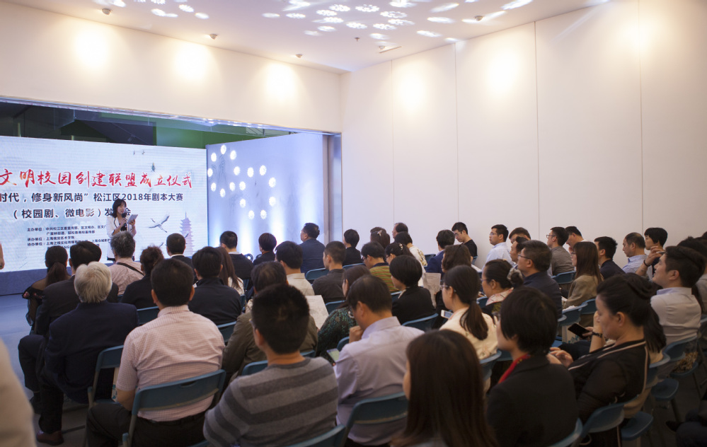 5月10日下午,驻松高校文明校园创建联盟成立仪式暨“逐梦新时代修身新风尚”松江区2018年剧本大赛(校园剧、微电影)发布会在上海视觉艺术学院举行。仪式上,上海工程技术大学被授予驻松高校文明校园联盟首任轮值理事长单位,校党委宣传部部长兼党办主任王陈担任首任轮值高校理事长。