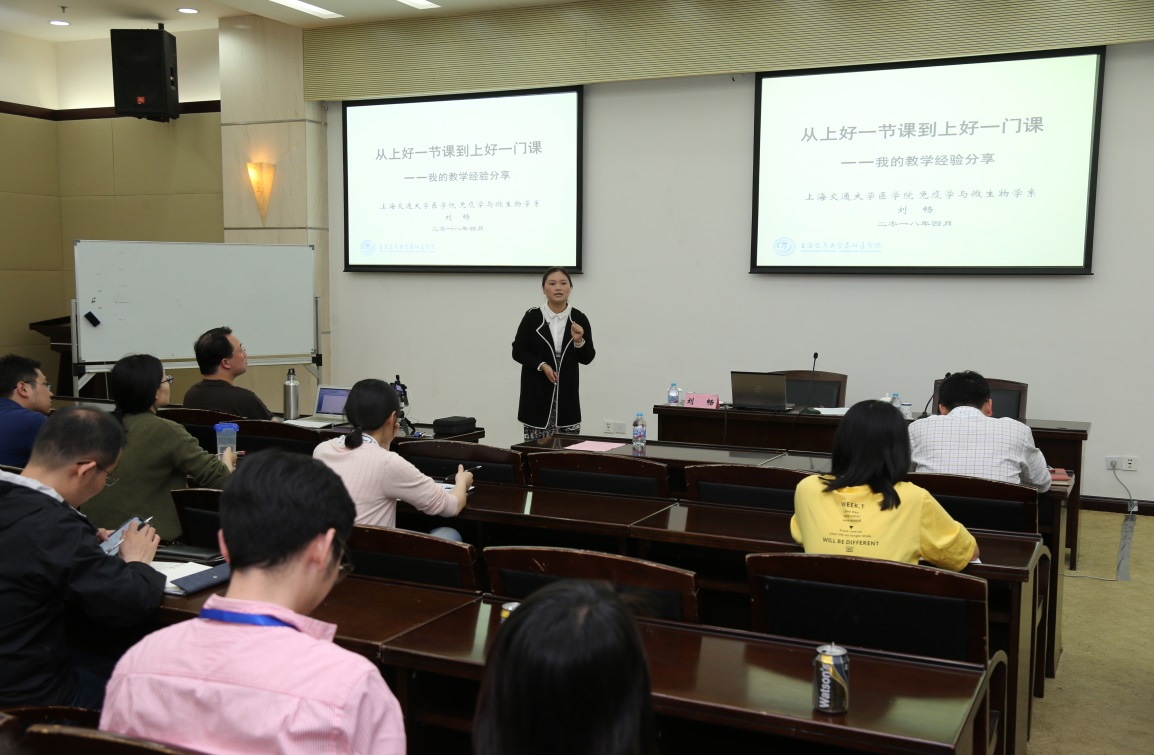 5月8日培训会,第三届全国高校青年教师教学竞赛一等奖获得者上海交通大学医学院刘畅老师针对本次青教赛,讲授了《从上好一节课到上好一门课》的专题讲座。她强调要有以学生为中心,培养学生的能力、知识、素养的教学理念,要有扎实的教学基本功。同时以病原生物学为案例,详细阐述了教学理念更新、教案设计要点、教学目标设定、教学重点难点的把握以及教学内容的安排;最后就板书设计、PPT制作,授课中的语言教态、提问技巧、教具使用等分享了自己的比赛经验、方法和技巧。