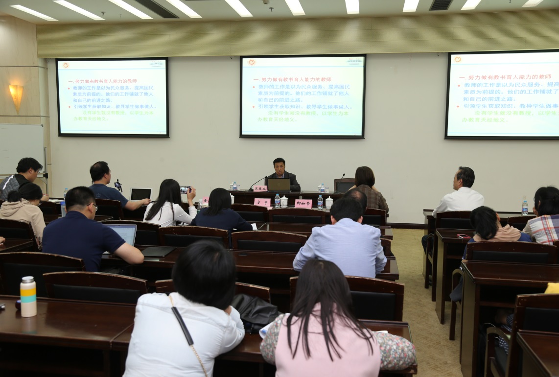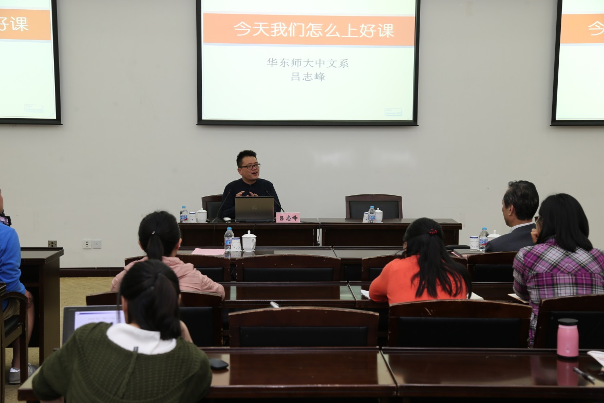 5月10日培训会,第三届全国高校青年教师教学竞赛一等奖获得者华东师范大学吕志峰老师以《今天我们怎么上好课》为主题,从参加青教赛谈起分享了自己参加青教赛的经历,之后就如何上好课结合青教赛赛制和要求进行了讲授。他强调“学术性是大学课堂的支撑”,“科研要反哺教学”,大学课堂要具有思辨性和批判性,课堂是“思考与探讨的存在”,最后他讲到上课技巧时就PPT制作,语言教态,备课时强调“潜心思考,用心备课”,希望广大青年教师能重视教学,钻研教学,教学相长,不断提高自身素养。