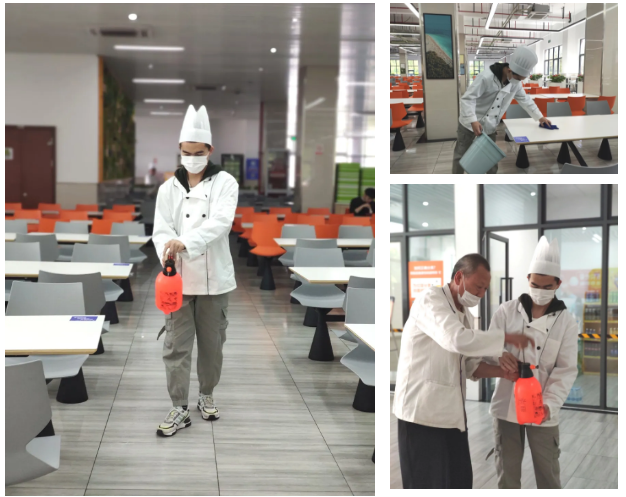 航空运输学院(飞行学院)的陈卓同学在第二食堂参与了餐厅保洁消杀岗位的工作,“平日看到负责消杀工作的叔叔很熟练地给食堂空间进行消毒,心里会觉得很容易,但是今天叔叔手把手地教我如何给喷壶加压,我才明白如何才能让消毒液更加均匀分布,从而使得消毒效果和面积达到最大化”。他深深体会到原来每份劳动都蕴藏着智慧,今后将更加注重保持用餐环境卫生,珍惜食堂师傅们的劳动果实。