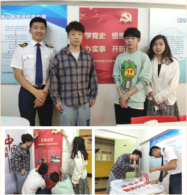 在三期16号宿舍楼,航空运输学院(飞行学院)党员学生李思翀用自己的双手布置了党史学习教育空间,他颇有感触地说:“用劳动的双手为公寓里的党员活动室营造红色文化氛围、拓展党史学习教育空间,是我的光荣。”作为预备党员,他表示要向一线的劳动者学习多做实事,为身边的同学们服务;作为飞行学员,更要传承做事一丝不苟、细致入微的精神,确保每次航班的飞行安全。