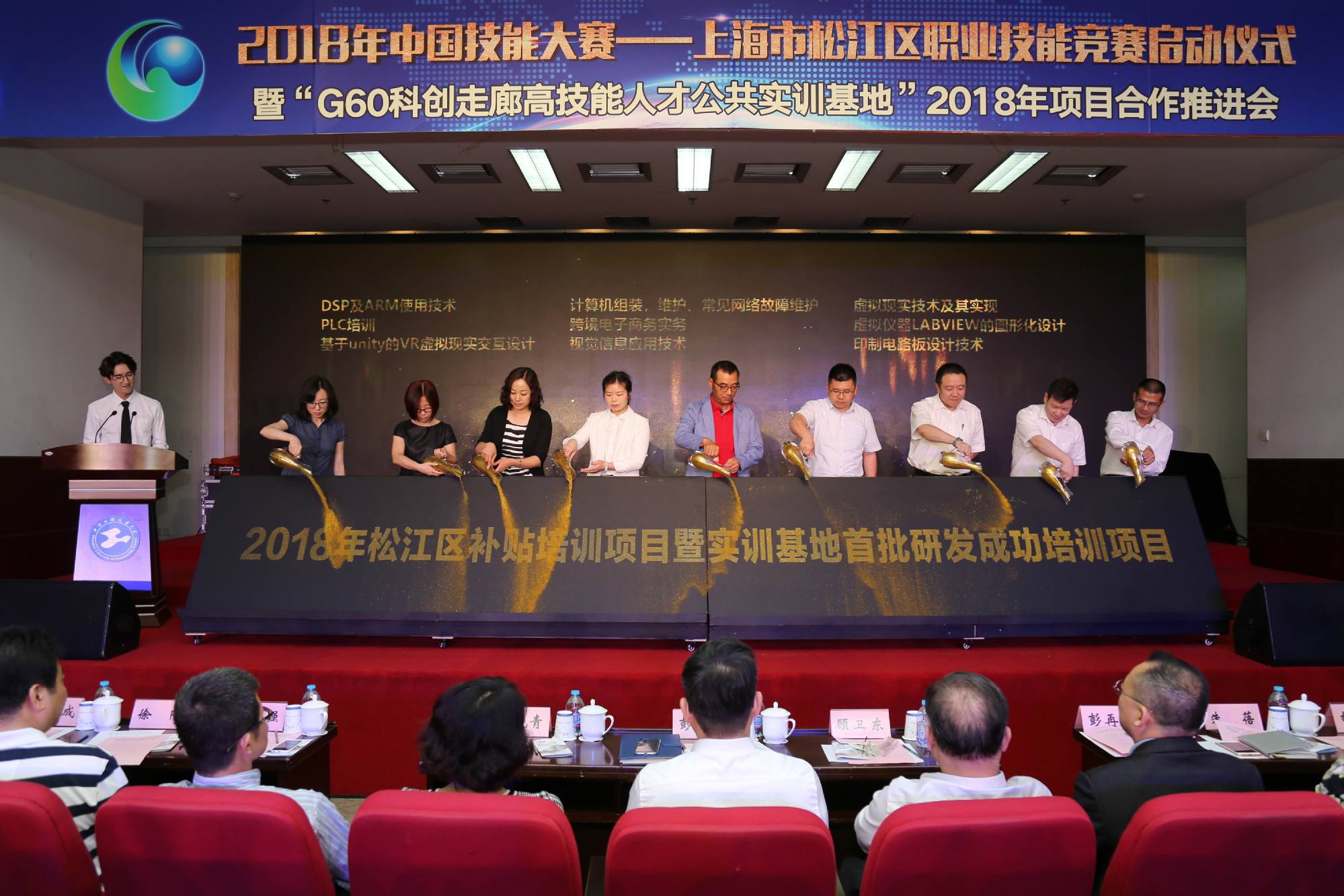 为深入落实区校合作,持续推动我校与松江区人力资源和社会保障局共建的“G60科创走廊高技能人才公共实训基地”项目不断深化,5月15日上午,2018年中国技能大赛--上海市松江区职业技能竞赛启动仪式暨“G60科创走廊高技能人才公共实训基地”2018年项目合作推进会在我校松江校区图文信息中心第二报告厅举行。中共上海市松江区委常委、组织部部长彭琼林,上海工程技术大学党委副书记、副校长朱晓青,上海市人力资源和社会保障局职业能力建设处处长顾卫东,上海市职业技能鉴定中心党支部书记崔立强,上海市就业促进中心职业培训处副处长宋丽萍,松江区人力资源和社会保障局局长彭再德,以及我校相关职能部门、学院负责人出席活动。