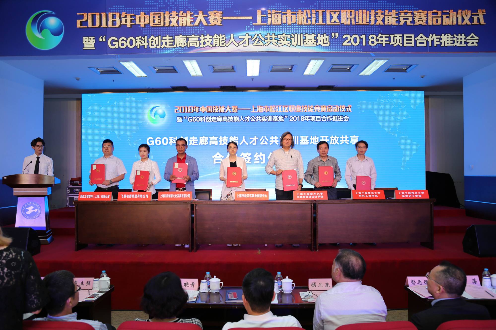 活动中,上海工程技术大学工程实训中心和松江区人力资源和社会保障局分别对“G60科创走廊高技能人才公共实训基地”首批研发成功的G60科创走廊职业培训项目和2018年松江区职业技能竞赛方案进行发布。我校相关学院与9个G60科创走廊企业、松江区就业促进中心分别签订了《G60科创走廊高技能人才公共实训基地开放共享协议》、《共同建立产学研合作教育见习基地协议》,标志着实训基地首批校、企、政府三方合作项目落地。活动还启动了“G60科创走廊职业培训联盟”和2018年松江区职业技能竞赛。