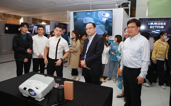 5月20日下午,以“数字·百年荣耀”为主题的中韩多媒体设计学院2021年数字媒体毕业设计作品展于松江校区行政楼19楼开幕。校长俞涛,副校长夏春明,部分职能处室负责人及中韩多媒体设计学院全体师生,校外合作单位代表出席开幕活动。