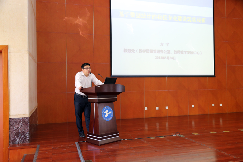 副校长姚秀平作了题为“大力加强专业建设,切实提高人才培养质量”的专题报告,从教育教学工作的三大主题出发,总结了我校专业建设的现状与成绩,阐明了高等教育发展的形式与挑战,提出了我校专业建设的两个导向、五项任务,为我校专业建设指明了方向。