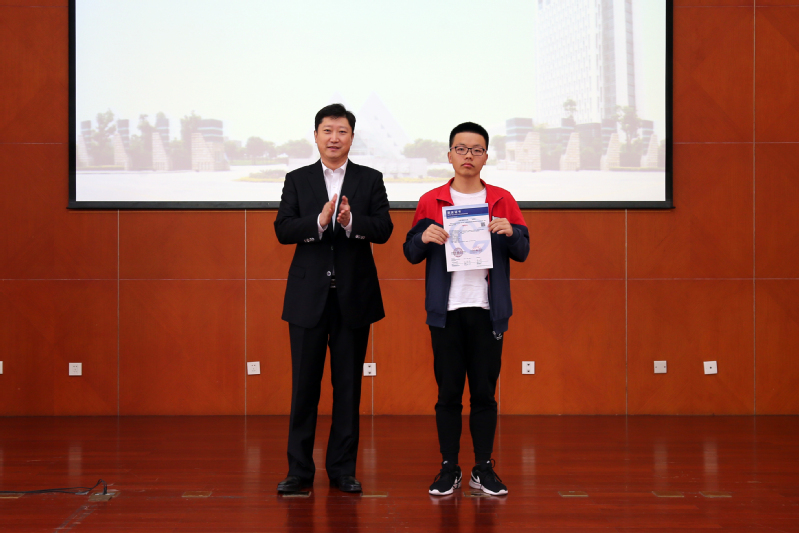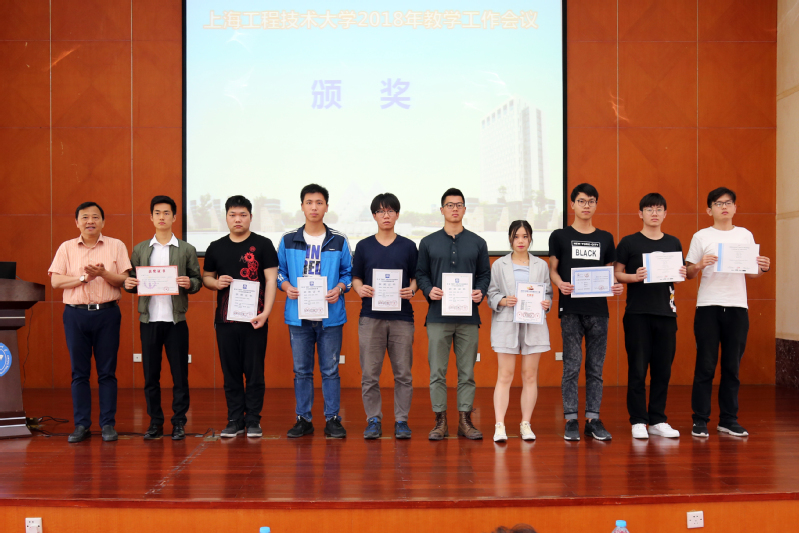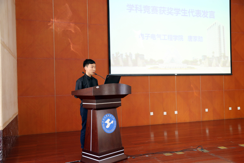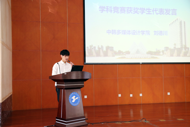 2017年我校在大学生学科竞赛中表现优异,总共获各类大学生学科竞赛奖项728项,校领导为国家级获奖代表颁奖。汽车工程学院孙裴老师和电子电气工程学院唐家勋同学、中韩多媒体设计学院刘德川同学分别代表优秀指导教师和学科竞赛获奖学生发言,讲了自己的心得体会。