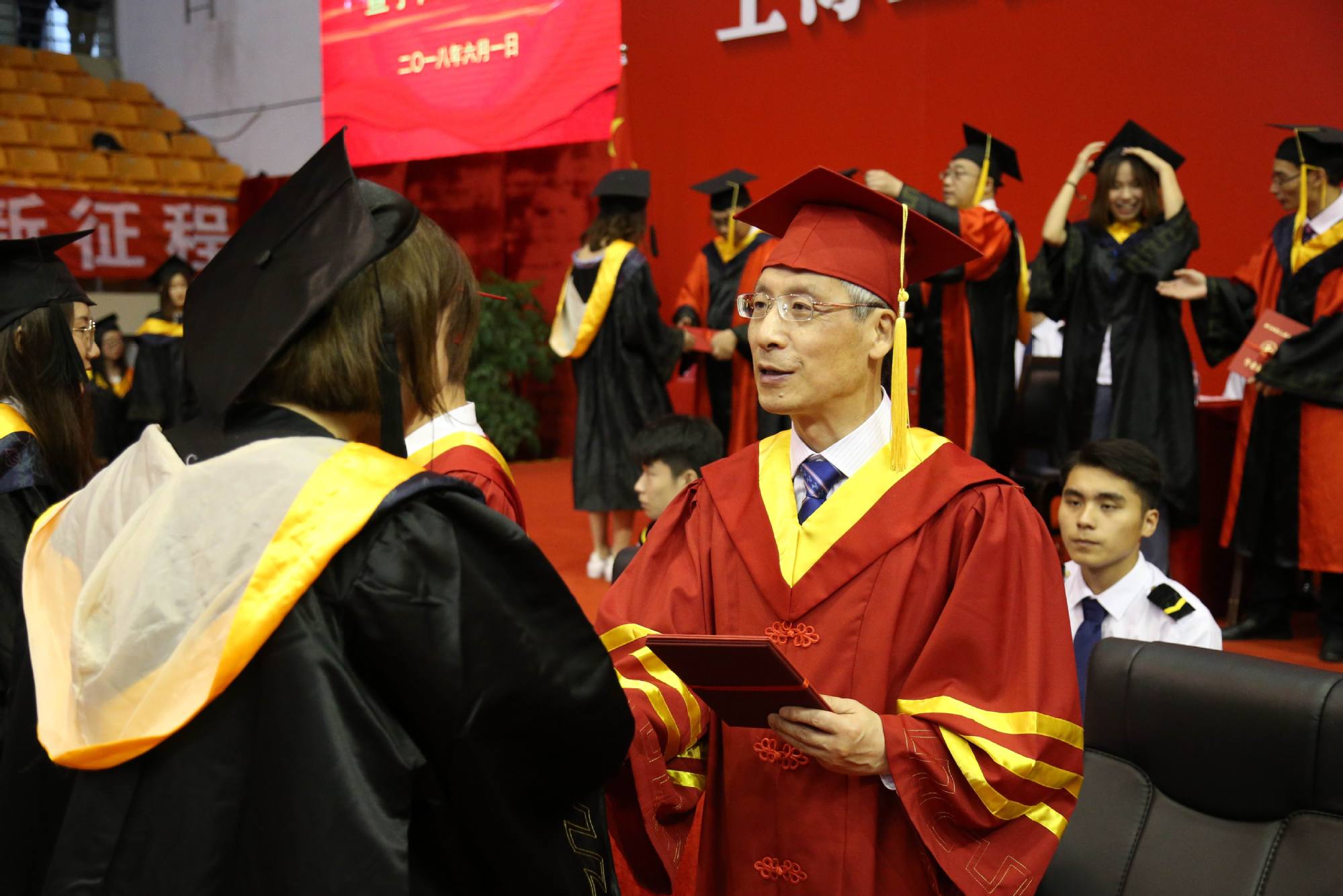 毕业典礼上,李江书记宣读了2018年获上海市高校优秀毕业生称号的名单。
