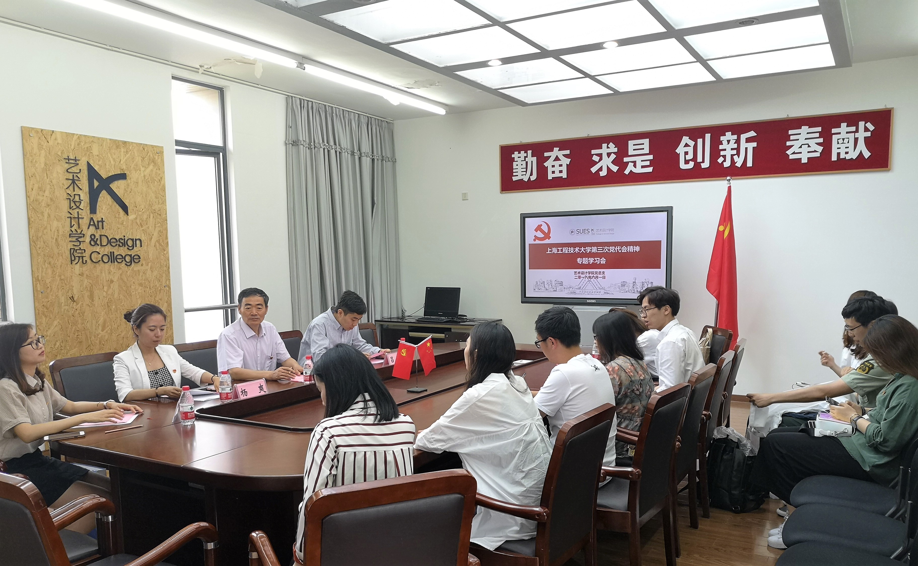6月1日中午,艺术设计学院召开了上海工程技术大学第三次党代会精神专题学习会。学院党总支书记、副书记、组织员、支部书记以及党员代表共同参加了学习。会上,许传宏书记传达了学校第三次党代会精神,并带领大家共同学习了校党委书记李江同志作的题为《不忘初心,砥砺前行——为加快建成高水平现代化工程应用型特色大学而努力奋斗》的工作报告。介绍了学校发展所面临的机遇、挑战和考验,以及今后一个时期学校发展的指导思想、发展目标、发展战略,明确提出了今后五年学校事业发展和党的建设的主要任务。学院要围绕这一宏伟目标,继续深入推进“人才强校、特色发展、国际化发展”三大发展战略,结合学院学科特色和优势,大力引进优秀人才,持续推进学院发展。与会党员纷纷表示,学习了党代会精神后,感觉非常振奋人心,展望着学校美好的未来,作为工程大的一员,充分发挥好教师党员、学生党员的先进模范作用,不忘初心,砥砺前行,要不断与深化学校综合改革,贯彻落实“十三五”发展规划有机结合起来,为早日建成国内一流的高水平现代化工程应用型特色大学而努力奋斗。