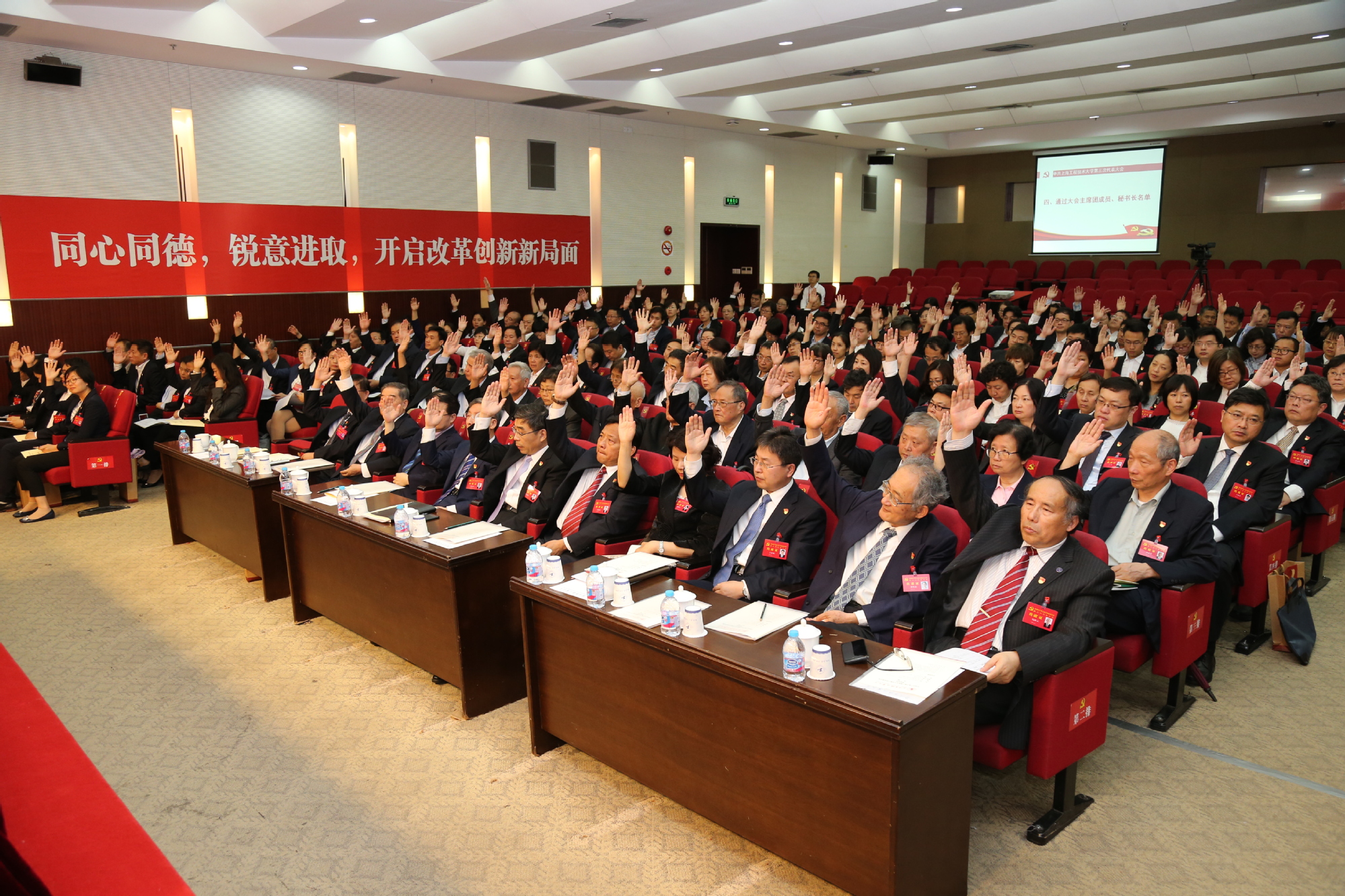 5月25日下午,中国共产党上海工程技术大学第三次代表大会预备会议在图文信息中心第二报告厅举行。会议由李江同志主持。预备会议应到正式代表196名,实际到会代表188名。