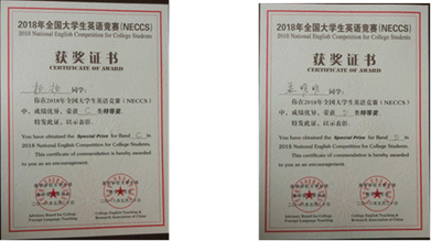 本次大赛初赛从4月15日开始,我校5000多名同学报名参赛,最后35名同学参加了5月20日举行的复赛,复赛分上午笔试和下午口试两场,按两场考试的总分决出特等奖。杨扬和孟明明同学不负众望,获得特等奖。他们将和部分一等奖获得者一起接受上海组委会的遴选,胜出者将于暑期参加全国总决赛暨2018年全国大学生英语夏令营。