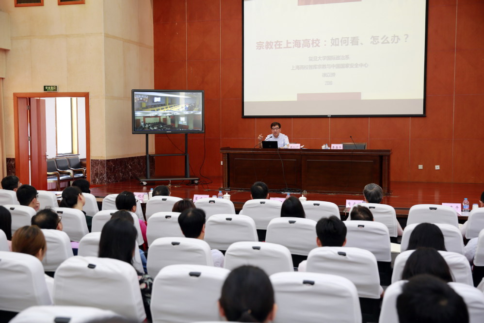 徐以骅教授的报告从中国的宗教国情、高校的宗教处境、对高校宗教问题如何看、怎么办以及大国宗教四个方面谈了如何看待高校的宗教问题。