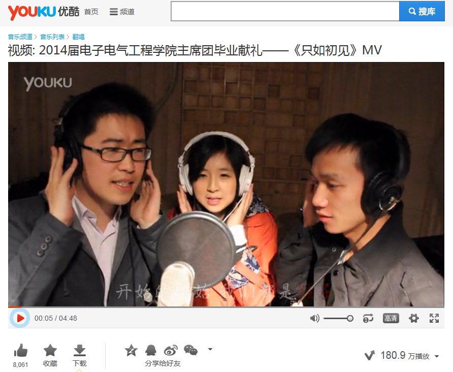 “开始的开始,我们都是孩子,最后的最后,渴望变成天使……曾经的小学弟,带着梦想远去……”电子电气工程学院2014届毕业生自编自导自演的MV《只如初见》上传到优酷网后,迅速占领了头条的位置,点击量几日内便飙升至180万次。