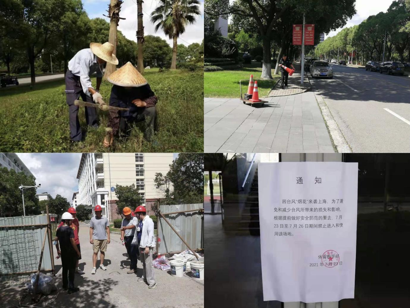 校内各部门坚守岗位,各司其职,积极应对,形成合力,保障校园安全稳定,确保师生平安度汛。学校防汛防台办公室密切关注台风“烟花”的动态信息,根据台风预警响应等级,发布应对工作提示。资产与实验室管理处对全校在用实验室进行排摸检查,对发现的安全隐患及时进行整改。基建处加强校内在建工地安全管理,对脚手架、围挡等设施进行加固处理,确保台风期间工地安全。后勤实业发展中心对校区防汛防台物资进行补充,加强排水设备的清淤,加固校区树木等保障工作,确保防汛防台物资保障供应及校园环境安全。保卫部(处)加强校园安全巡逻频次,对校区道路进行清障排堵,在校园重要公共区域地下空间增设预警岗位,增强校园安全管控以及突发事件响应力度。各二级单位也积极开展安全自查工作,落实汛期值班,对所辖范围的重点防御部位加强预报预警工作监管。