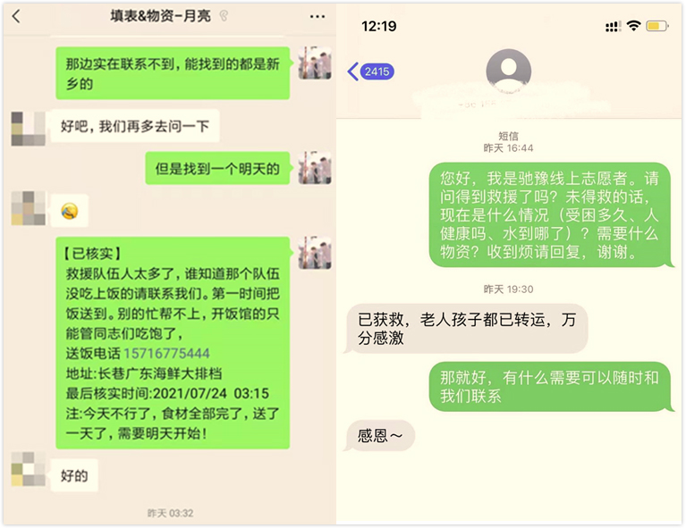 管理学院研究生段萌萌、戴晟元、郭梦珂、段梦琪、安心怡等同学积极报名参加了“弛豫志愿者团”,分别在河南、上海负责灾情信息的录入与核实工作。他们将各个渠道收集来的求助和救援信息进行录入与核实,并实时跟进救助情况的进展,为灾区提供后台信息支撑,目前已经持续完成录入信息的核实、失踪人员的信息扩散、状态更新等工作,实现了物资需求与支援的点对点匹配,完成人员求助信息、物资需求信息的高速上报、匹配、反应。研究生李桃,身在泄洪区河南周口市,她积极协助物资运送,为赵庄防洪点、青华学校救灾滞留点及红花乡镇送去300箱矿泉水及100箱小面包。研究生刘洪豆,积极报名并参与松江区爱心助困志愿者协会开展的“赈灾扶贫”公益活动,在松江区慈善超市对捐款物资进行整理、清点、并分类打包,共计2112件。