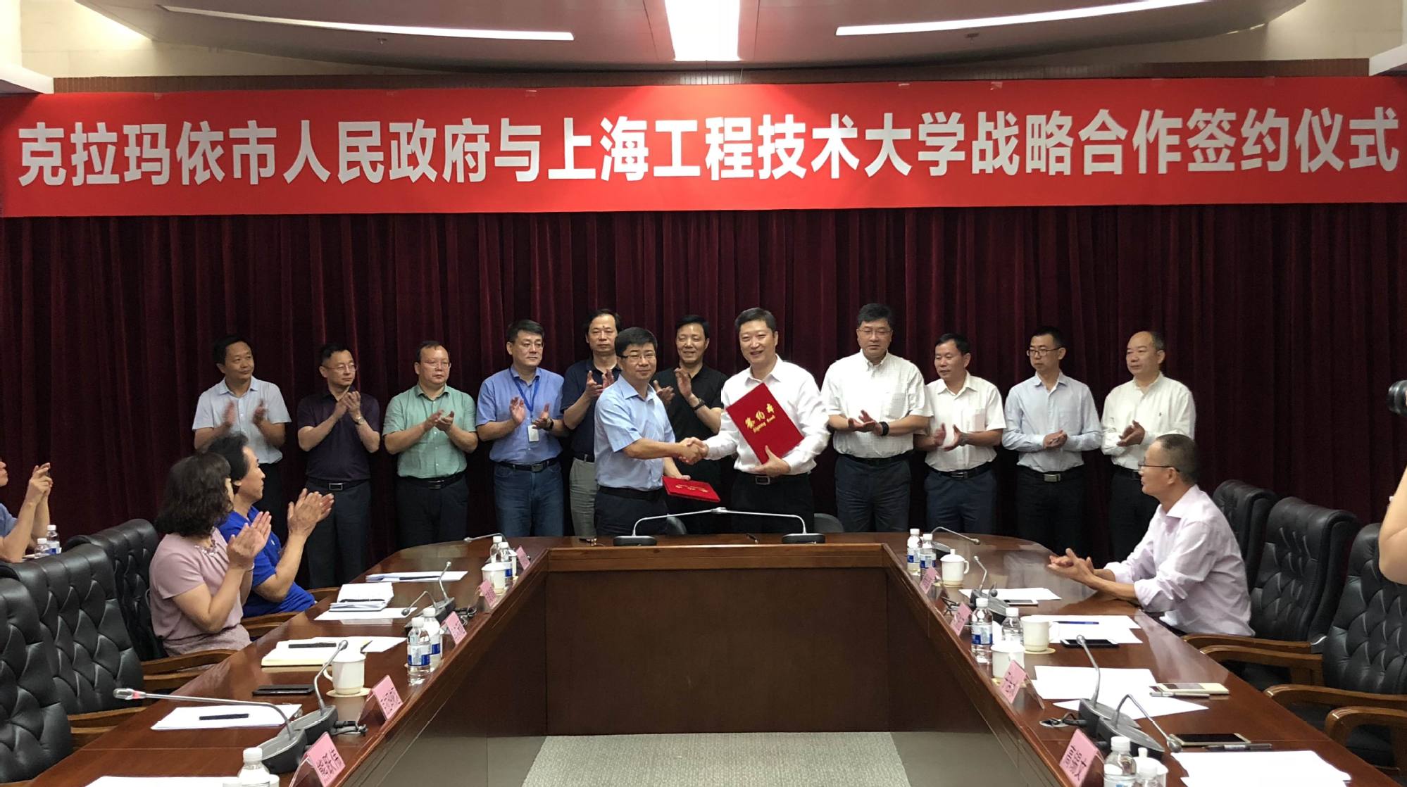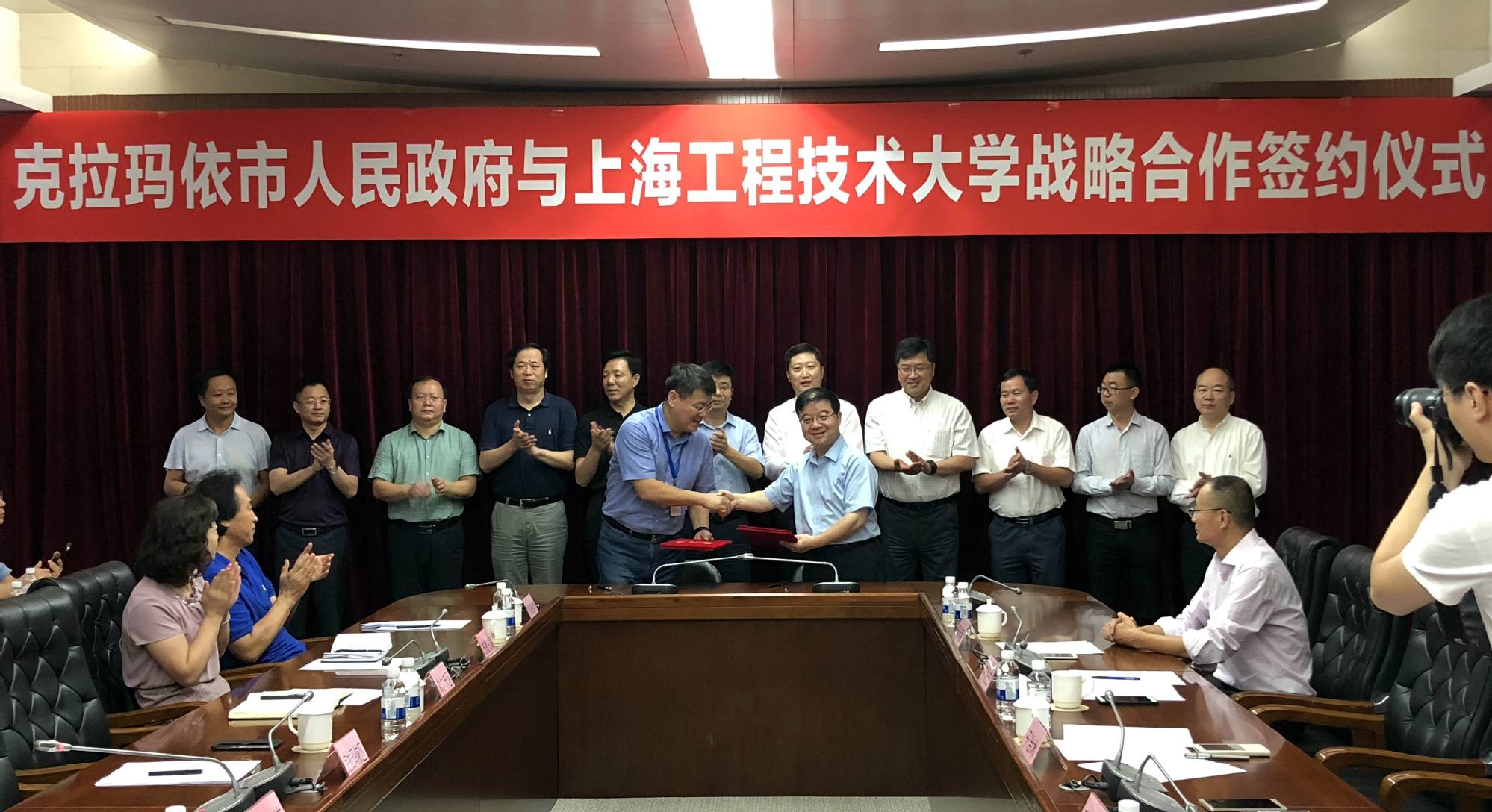 市长王刚与书记李江分别代表双方签订了《克拉玛依市人民政府与上海工程技术大学战略合作框架协议》;副市长熊跃伟与副校长刘武君分别代表双方签订了《上海工程技术大学与克拉玛依先进科技联合研究院产学研战略联盟2018年行动计划》;市府副秘书长、先科院院长阎立军与上海市激光先进制造技术协同创新中心执行主任、材料工程学院书记于治水签订了《上海市激光先进制造技术协同创新中心新疆分中心共建协议》;市委常委、市委秘书长童中华与副校长刘武君为“上海市激光先进制造技术协同创新中心新疆分中心”成立揭牌。