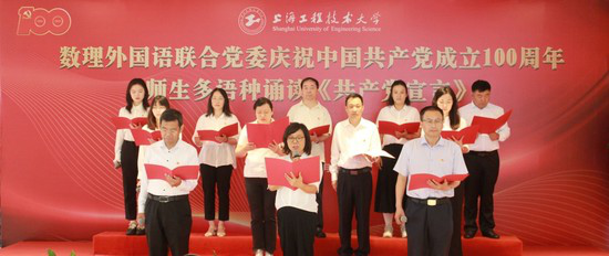 走出去学,请进来学,联组互学,共同建设。数理外国语联合党委充分利用各类党史学习资源,努力提升内外联合学习能级,用活重要资源,用好重要节点,把“读一段红色经典、听一段党史故事、重温入党誓词”及时转化为师生干事担当的精神力量。在收看庆祝中国共产党成立一百周年庆祝大会后,外国语学院、数理与统计学院师生现场联组学习,师生用汉语、英语、德语、法语、俄语、葡萄牙语、日语共同诵读《共产党宣言》,进一步激发全体师生爱党之情。与沙家浜革命历史纪念馆进行党建共建和爱国主义教育实践教学基地签约,进一步完善以爱国主义为核心的“三全育人”示范学院建设深度。主办中国商务统计学会理事会,邀请中国文化红色研究会学术委员会委员、《解放军报》原主编陈先义在线直播《毛泽东主席的人民观及其建党思想确立》主题报告,与马克思主义学院结对子,开展现场导学,引导党员师生深刻领会党史精髓、建党精神和中国特色社会主义建设的创新要领。