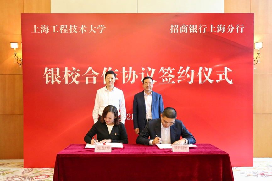 在双方嘉宾的见证下,招商银行上海分行行长助理占京平和上海工程技术大学团委书记董旖旎代表合作双方签署了《上海工程技术大学——招商银行上海分行银校合作协议》。