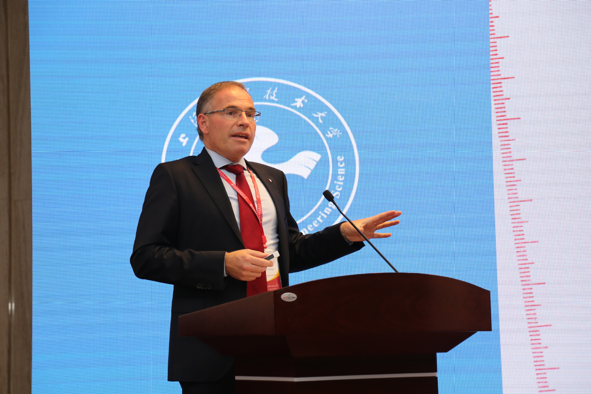 主旨发言后,在济南大学校长张士强主持下,五位来自世界各地的校长和江苏汇博机器人技术股份有限公司总裁王振华进行了主题报告。德国卡尔斯鲁厄应用科技大学校长Frank Artinger的报告主要介绍了本校在培养工程人才合作教育中的探索与实践;爱尔兰沃特福德大学校长Willie Donnelly的报告主要介绍了新兴工程的建设以及人才培养方面的创新;江苏汇博机器人技术股份有限公司总裁王振华的报告主要介绍了新工科背景下的AI与智能制造专业建设;瑞典哈姆斯塔德大学校长Stephen Hwang的报告主要介绍了哈姆斯塔德大学关于培养未来工程师的观点与实践探索;瑞士库尔技术与经济学院校长Kessler Jürg的报告主要介绍了跨学科整合和改革以实践为导向的工程学习课程;美国劳伦斯理工大学教务长Maria Vaz的报告主要从第四次工业革命的视角介绍了未来工程教育跨学科整合发展的趋势。