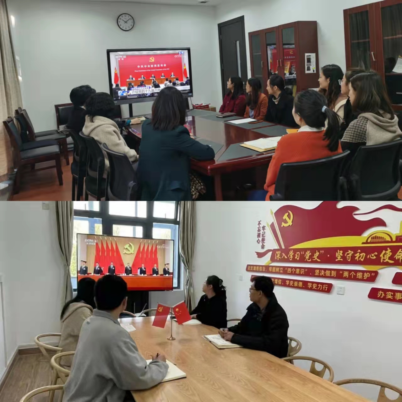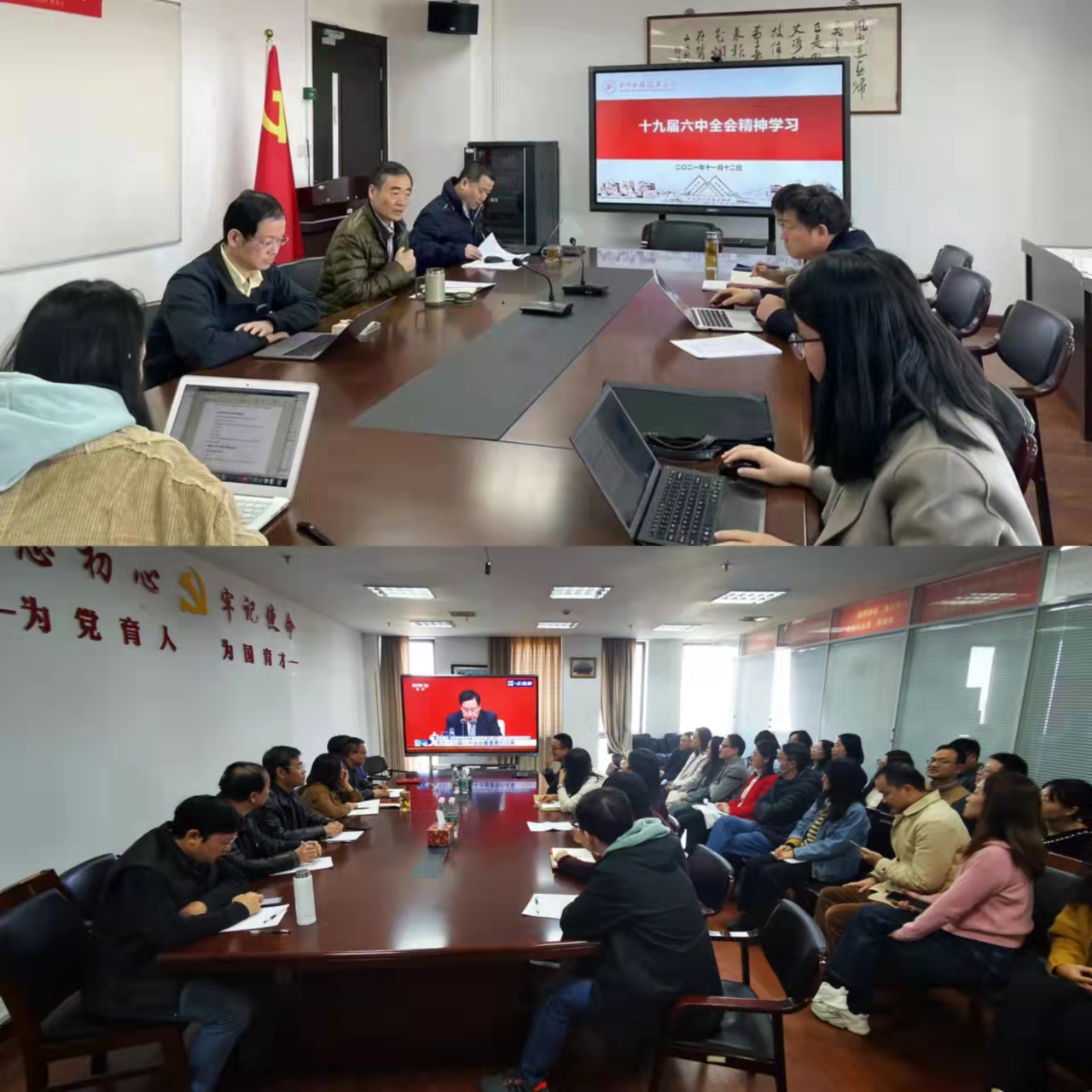 茫茫九脉流中国,纵横当有凌云笔。2021年11月8日至11日,党的十九届六中全会在北京举行。在学校各个会议室、教室,广大师生通过各种形式收看党的十九届六中全会精神新闻发布会,学习第十九届中央委员会第六次全体会议公报。我校师生纷纷热议,大家一致认为,党的十九届六中全会深刻总结党的百年奋斗重大成就和历史经验,吹响了全面建设社会主义现代化国家的冲锋号,是引领实现中华民族伟大复兴的里程碑。