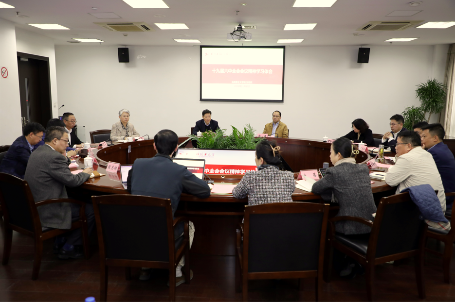 党委办公室主任高锡文,校长办公室主任曾国辉,党委教师工作部部长、人事处处长刘福窑,党委学生工作部部长、学生处处长朱蓓,发展规划处处长殷志祥,工会常务副主席李霞结合学习十九届六中全会会议精神的感悟体会以及自己的分管工作,分别进行了深入的研讨交流。